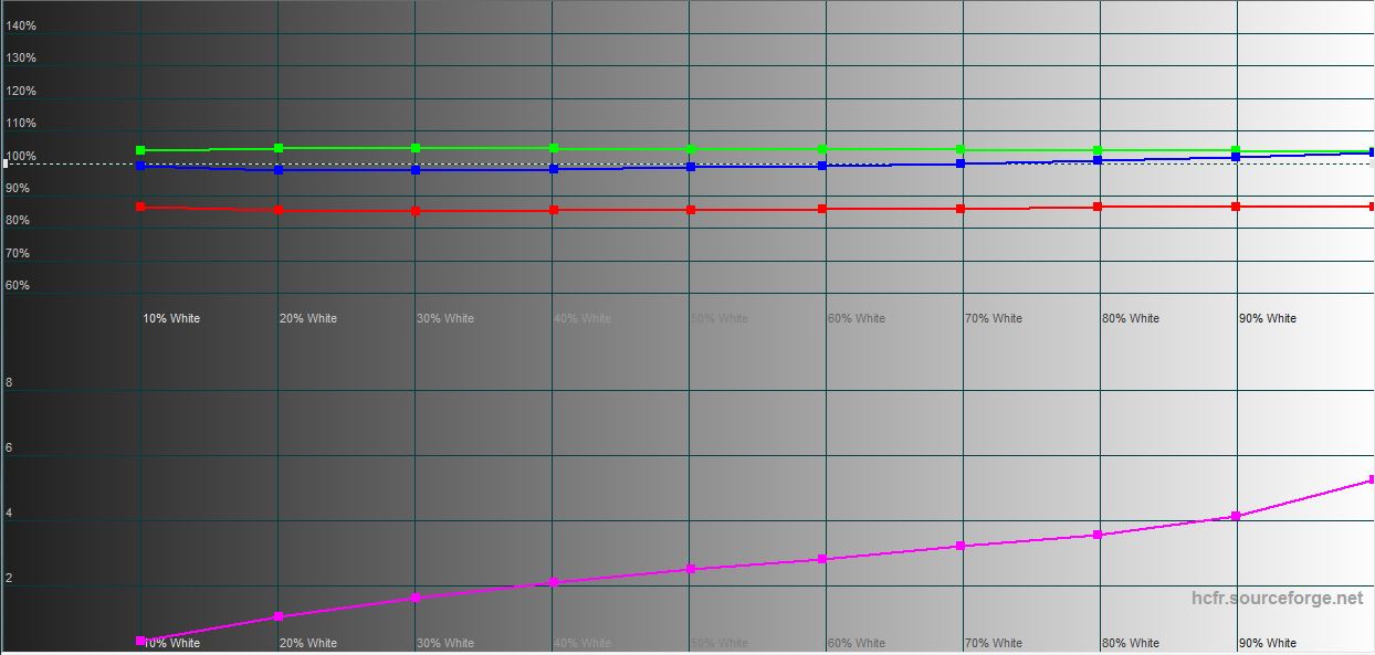 Lenovo Legion Pro 7 jest wyposażony w wyświetlacz IPS o rozdzielczości 2560x1600. Współczynnik proporcji wynosi 16:10, co ostatnio jest coraz częściej stosowane w laptopach. Maksymalna częstotliwość odświeżania wynosi 240 Hz, a czas reakcji piksela to 4 ms. Lenovo twierdzi, że wyświetlacz ma maksymalną jasność 500 cd/m², kontrast statyczny 1200:1 i 100% gamę kolorów sRGB. Obsługiwane są Dolby Vision, HDR 400 i synchronizacja częstotliwości odświeżania G-Sync. Ekran jest naprawdę bardzo dobrej jakości. Ma maksymalne kąty widzenia przy minimalnej redukcji kontrastu, przyjemne kolory i skuteczną powłokę antyrefleksyjną. Pomiary sprzętowe wykazały, że wartości jasności i kontrastu są zbliżone do deklarowanych. Maksymalna jasność wyniosła 480,243 cd/m², jasność czarnego pola 0,452 cd/m², a kontrast statyczny 1062:1. Gama kolorów jest niemal identyczna z sRGB, a dokładność odwzorowania kolorów jest bliska wartościom referencyjnym.