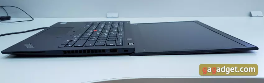 Laptop otrzymał znajomą, ściśle czarną obudowę o grubości 16 mm, dobrze znaną fanom tej linii. Według Lenovo laptop spełnia wojskowy standard MIL-STD-810G i toleruje wysokie i niskie temperatury, spadki ciśnienia i inne niezbyt korzystne warunki pracy. Co do wyposażenia, nie ma niespodzianek, tegoroczne typowe wypełnienie ulrabuchne. Czterordzeniowy procesor Intel Core i5-8265U z rodziny Whisky Lake, 8 GB pamięci RAM DDR4 2400 MHz i 256 GB SSD z interfejsem PCIe. Wyświetlacz - 14 cali, IPS z rozdzielczością FullHD i powłoką przeciwodblaskową. Istnieje spora liczba portów, w szczególności USB-C z Thunderbolt 3, pełnowymiarowy USB 3.1 (Gen 1) i HDMI 1.4, czytnik kart inteligentnych i złącze dokujące. Obecny jest również tradycyjny czerwony trackpoint z dodatkowymi przyciskami.