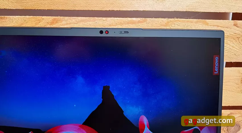 Ramki wokół ekranu są dość cienkie. Moduł kamery internetowej znajduje się w swoim zwykłym miejscu. Ma rozdzielczość FullHD i jest wyposażony w fizyczną migawkę. Obok znajduje się wskaźnik jej działania, a także kamera na podczerwień służąca do identyfikacji właściciela laptopa.