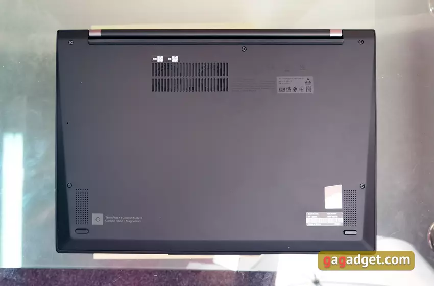 Obudowa nadal wykonana jest ze stopu magnezu i włókna węglowego. Dzięki zastosowanym materiałom obudowa jest bardzo wytrzymała i lekka. Laptop jest dostępny w dwóch opcjach wzorniczych: z teksturą włókna węglowego lub bardziej znaną czarną pokrywą z matowym wykończeniem, która jest bardzo podobna do Soft Touch. Mieliśmy tę drugą opcję. Wygląda i jest bardzo ładna, ale zbiera trochę odcisków palców. W prawym dolnym rogu górnej pokrywy znajduje się małe logo Lenovo, a w lewym górnym rogu logo ThinkPad z czerwonym wskaźnikiem LED.
