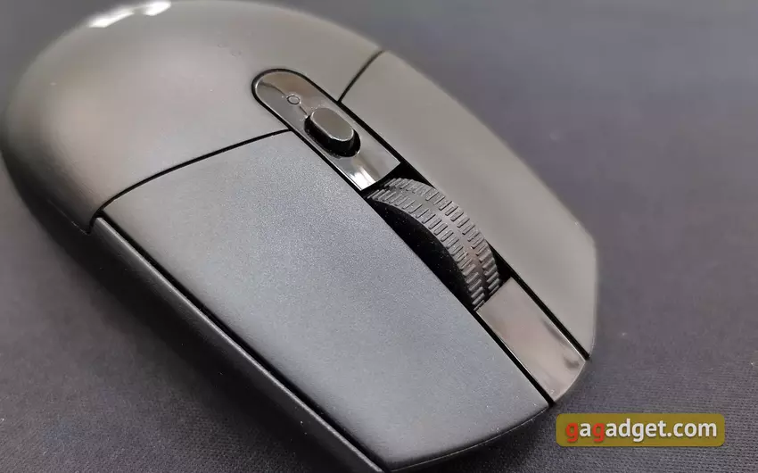 Główne przyciski są oddzielone od obudowy i mają prawie identyczny kształt i rozmiar. Logitech tradycyjnie używa wykończenia sprężynowego, dzięki czemu są one doskonale zamocowane i nie zwisają. Rolka przewijania jest szeroka, z żebrowaną gumowaną powłoką. W stosunkowo niewielkiej odległości od koła znajduje się przycisk do przełączania trybu DPI: