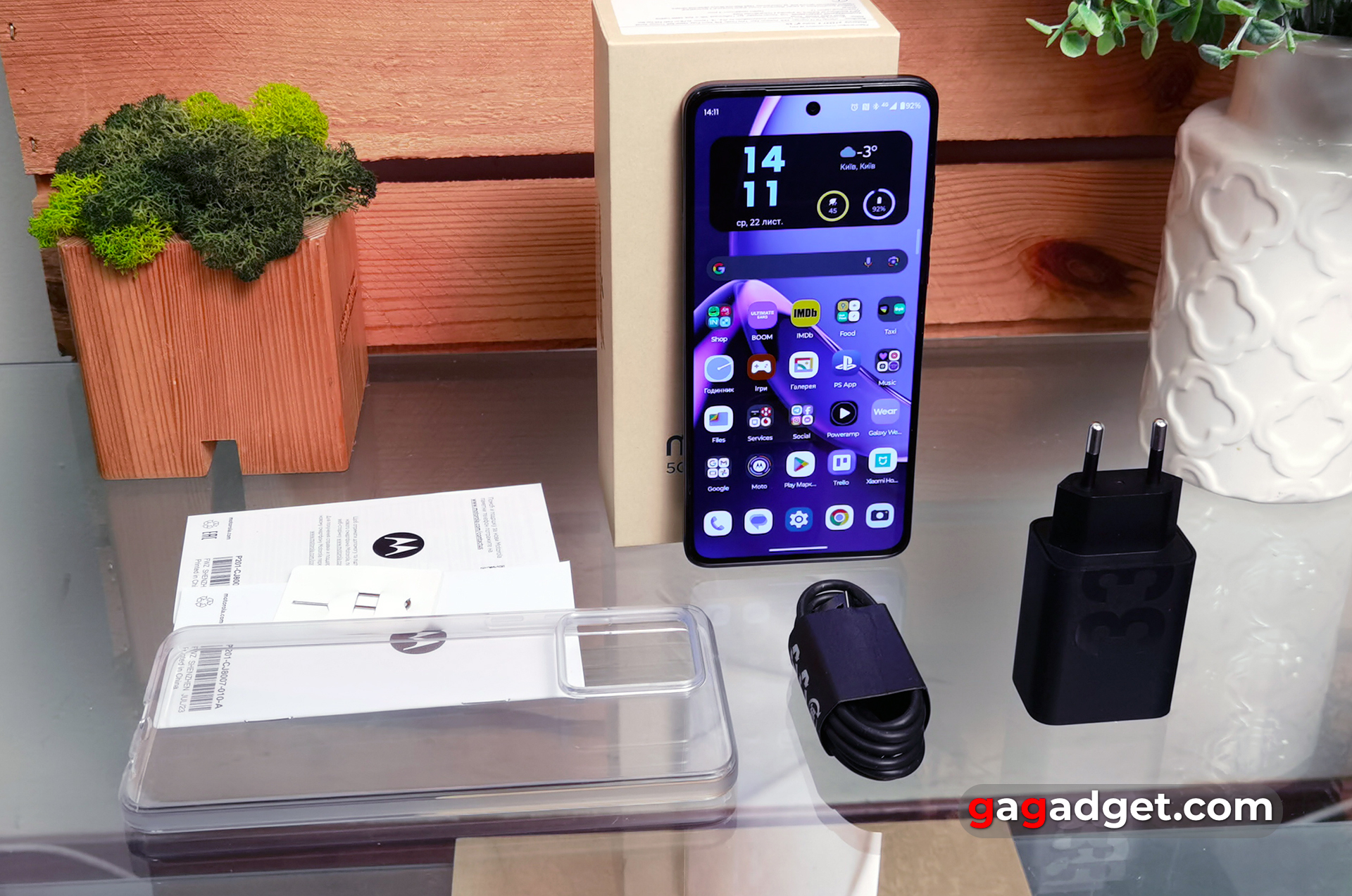 Ostatnio recenzowaliśmy kilka smartfonów Motorola w gg , więc opakowanie jest dość znajome. Pudełko z logo Motoroli i nazwą modelu. Wewnątrz znajduje się sam smartfon, zasilacz 33 W, kabel Type-C, przezroczyste silikonowe etui typu bumper, klips do tacki i dokumentacja.