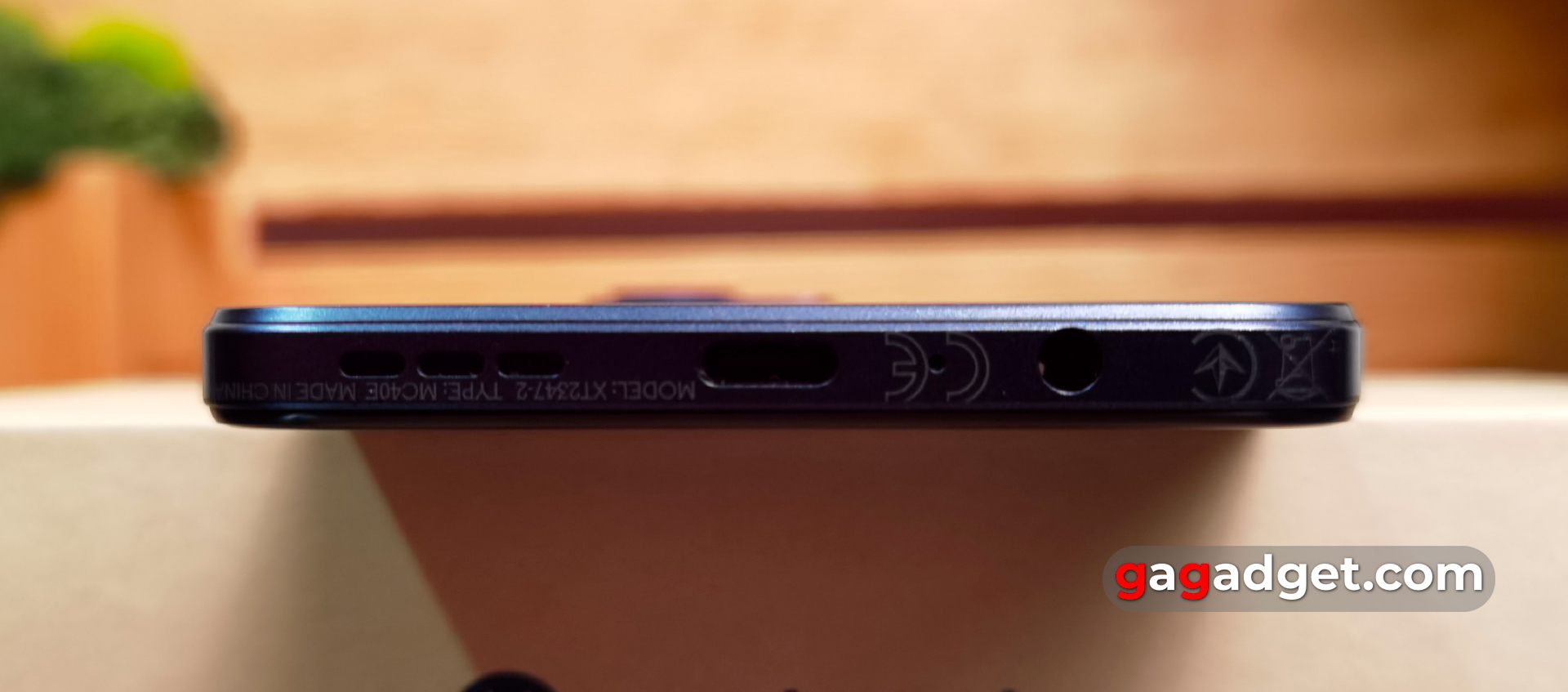 Motorola Moto G84 ma dodatkowy mikrofon na górze, a także znak Dolby Atmos. Na dole znajduje się główny głośnik, złącze Type-C i standardowe gniazdo słuchawkowe. Bardziej przystępne cenowo modele jeszcze nie podchwyciły trendu jego braku.