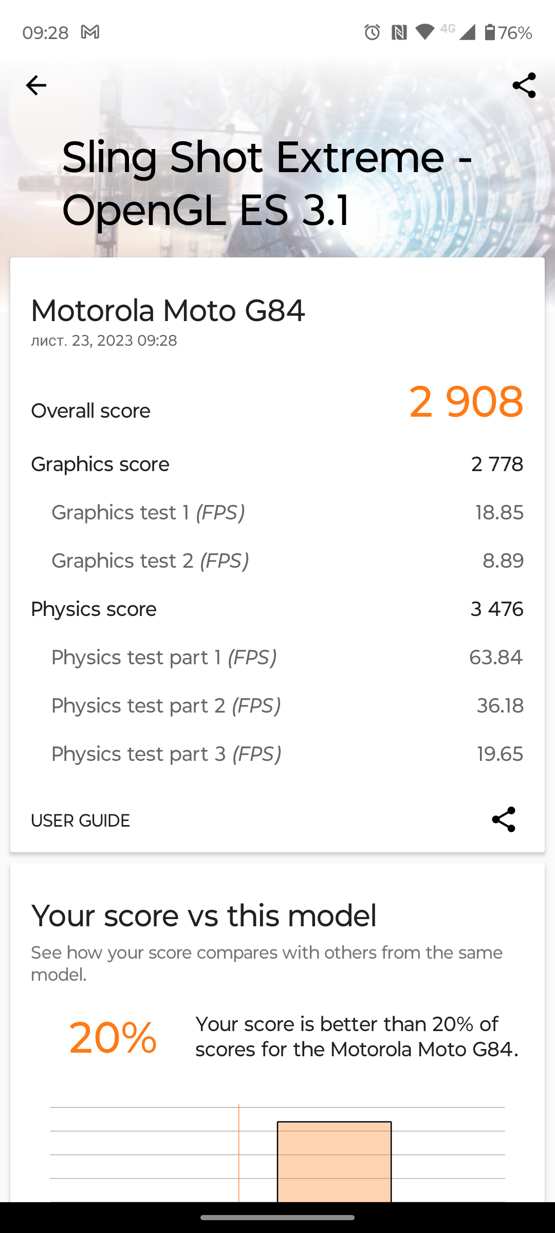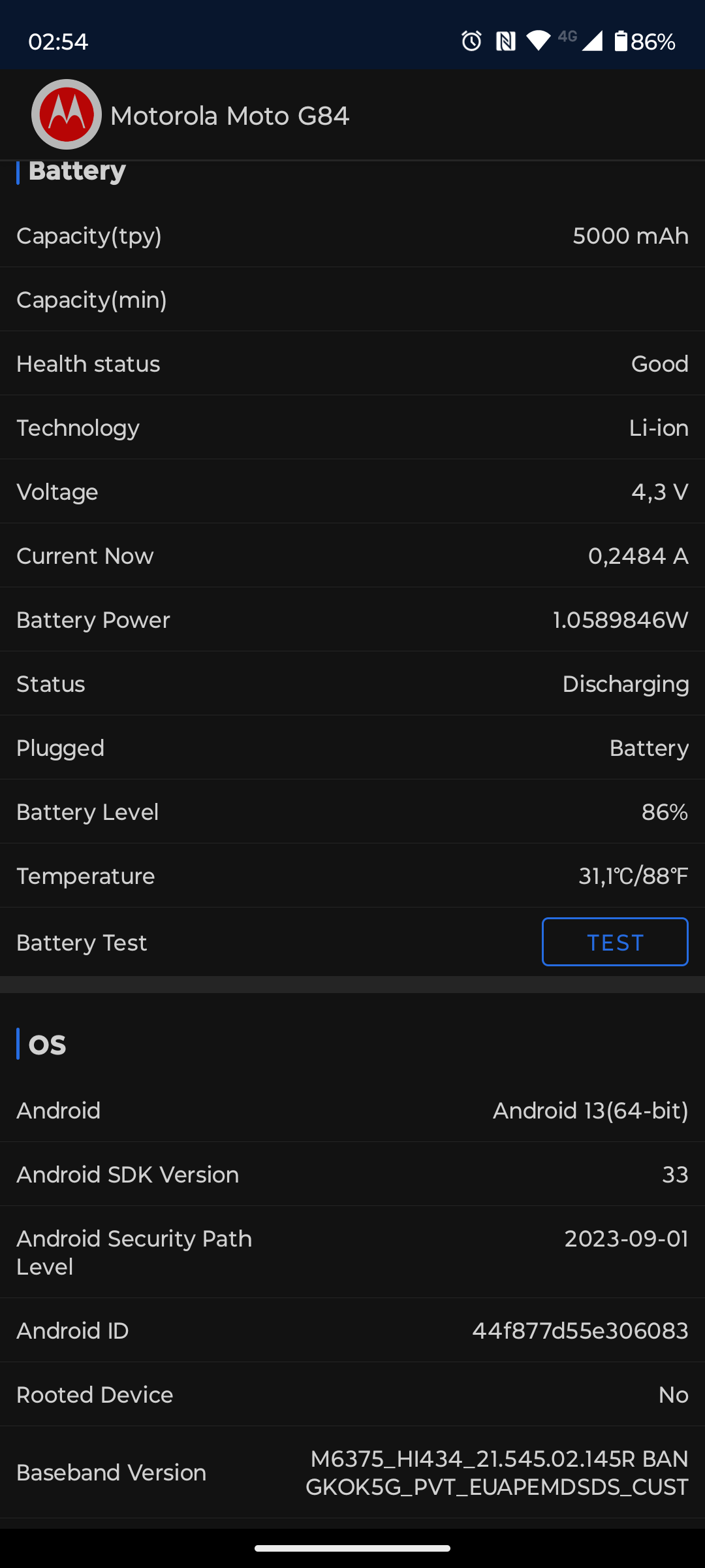 Test baterii Motorola Moto G84