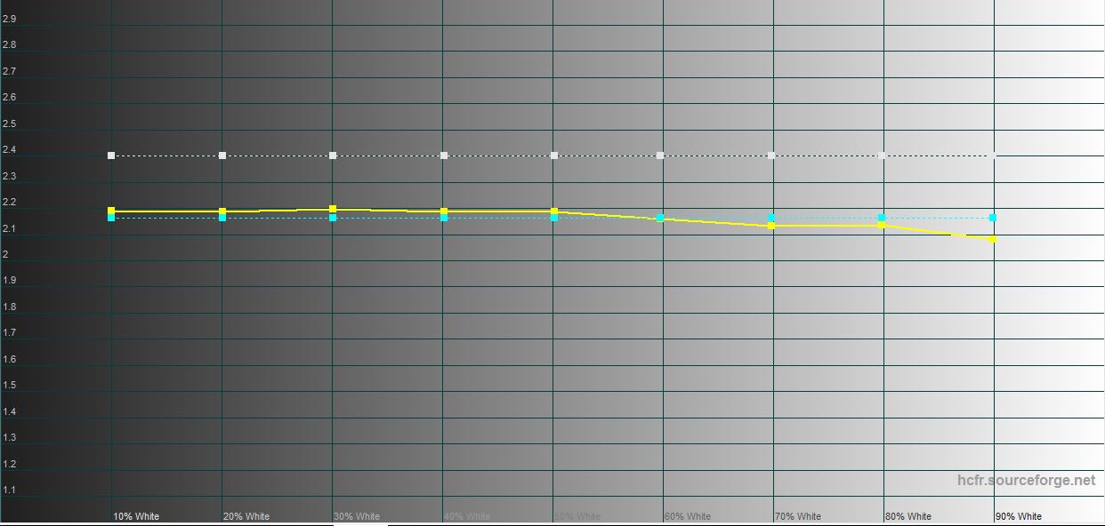 W trybie "Naturalny" gama kolorów jest zbliżona do sRGB, a odwzorowanie kolorów jest bliższe wartościom referencyjnym. Maksymalna jasność 454.815 cd/m2.