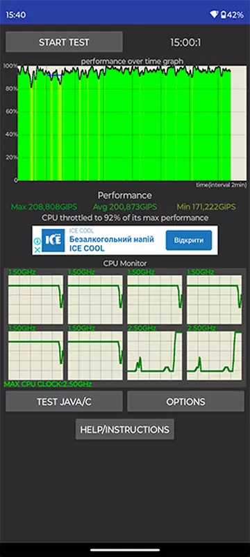 Stabilność urządzenia jest nieco lepsza niż Edge 40 z mocniejszym procesorem. Test dławienia procesora wykazał, że wydajność Motoroli Edge 40 Neo może spaść do 92% w ciągu 15 minut maksymalnego obciążenia, co jest bardzo dobrym wynikiem. Obudowa prawie się nie nagrzewa.