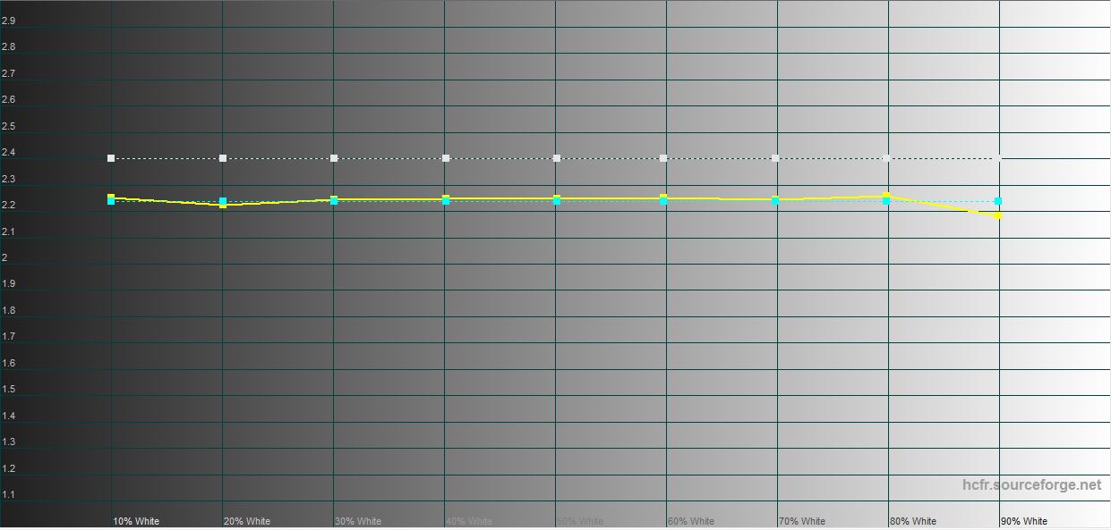 W trybie Natural gamut kolorów jest zbliżony do sRGB, a wszystkie wskaźniki są nieco bliższe wartościom referencyjnym. Jasność jest nieco niższa: 490,108 cd/m2.
