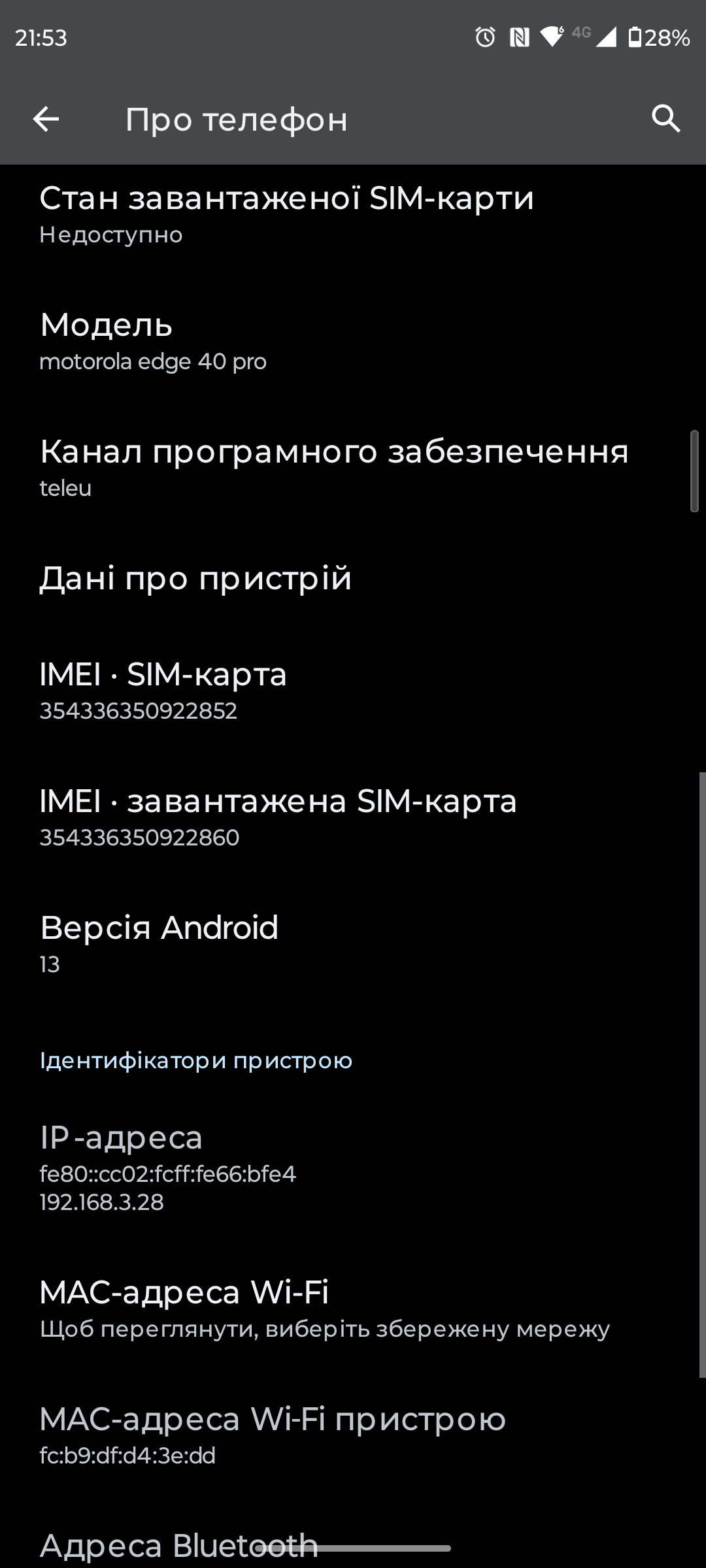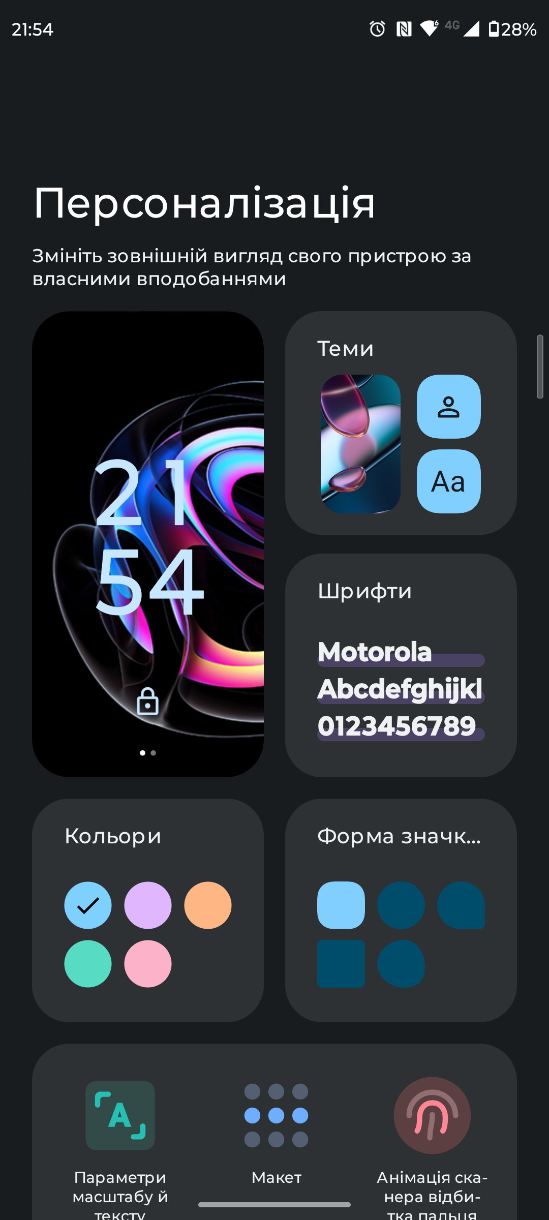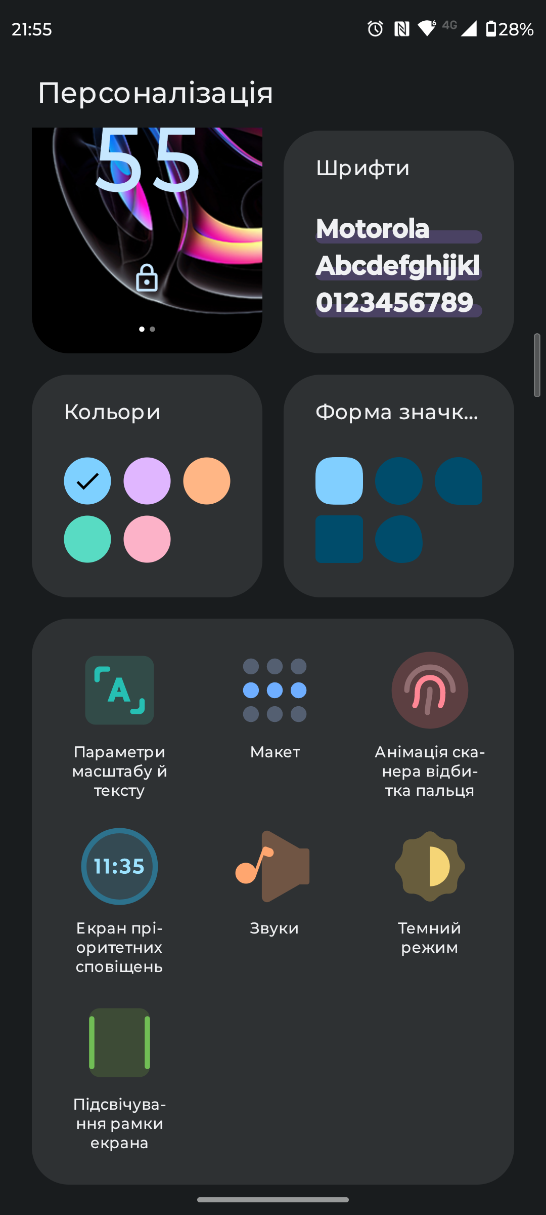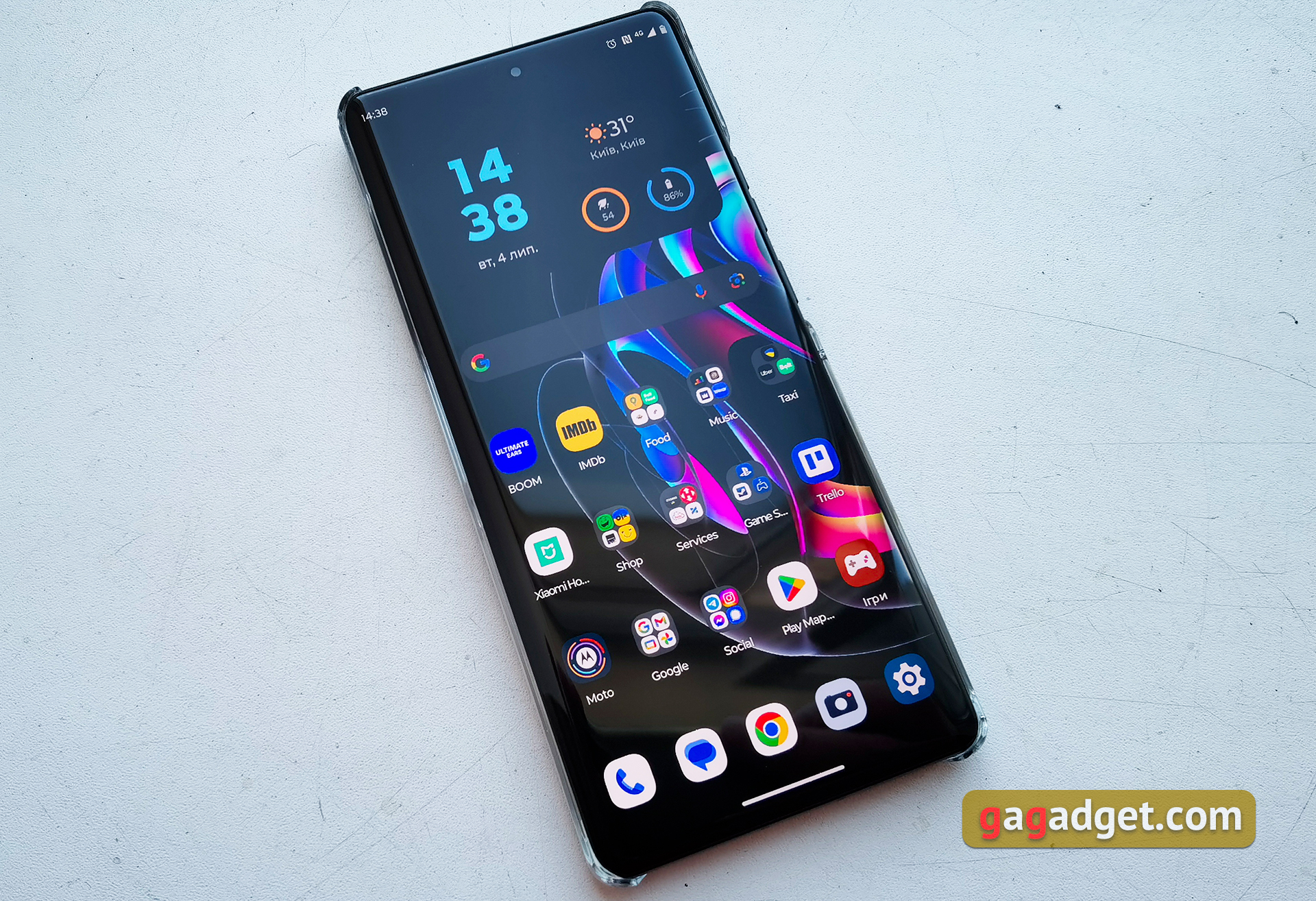 Motorola Edge 40 Pro ma 6,67-calowy pOLED z zakrzywieniami po bokach. Rozdzielczośćwynosi 2400x1080 (proporcje 20:9), a gęstość pikseli wynosi około 394 ppi. Zastosowano 10-bitową matrycę, zdolną do wyświetlania ponad miliarda odcieni kolorów. Obiecuje gamę kolorów DCI-P3 i szczytową jasność 1300 cd/m² w trybie automatycznym. Obsługiwane są technologie HDR10+ i Dolby Vision. Warto zauważyć, że maksymalna częstotliwość odświeżania wynosi 165 Hz. To więcej niż w większości flagowych smartfonów. Dostępne są tryby 60, 120, 165 Hz, a także tryb adaptacyjny, gdy jest używany, częstotliwość jest automatycznie dostosowywana w zakresie do 120 Hz. Częstotliwość odczytu czujnika wynosi 360 Hz, co jest ważne dla tych, którzy lubią grać w gry na swoich smartfonach. W ustawieniach jest całkiem sporo. Jasność, ciemne i jasne motywy, interfejs i skala tekstu, zapobieganie migotaniu (DC Dimming) dla sekty świadków PWM, częstotliwość odświeżania, tryb nocny, podświetlenie ramki wyświetlacza dla powiadomień oraz tryby wyświetlania kolorów (jasny i naturalny) z regulacją temperatury barwowej.