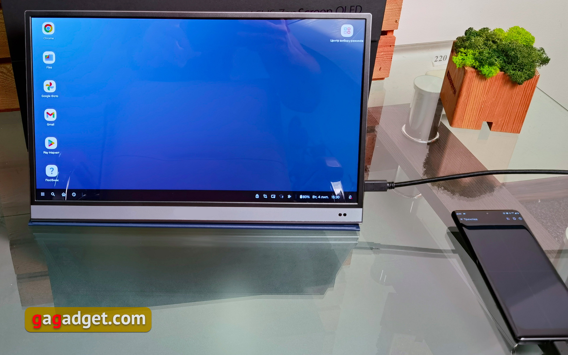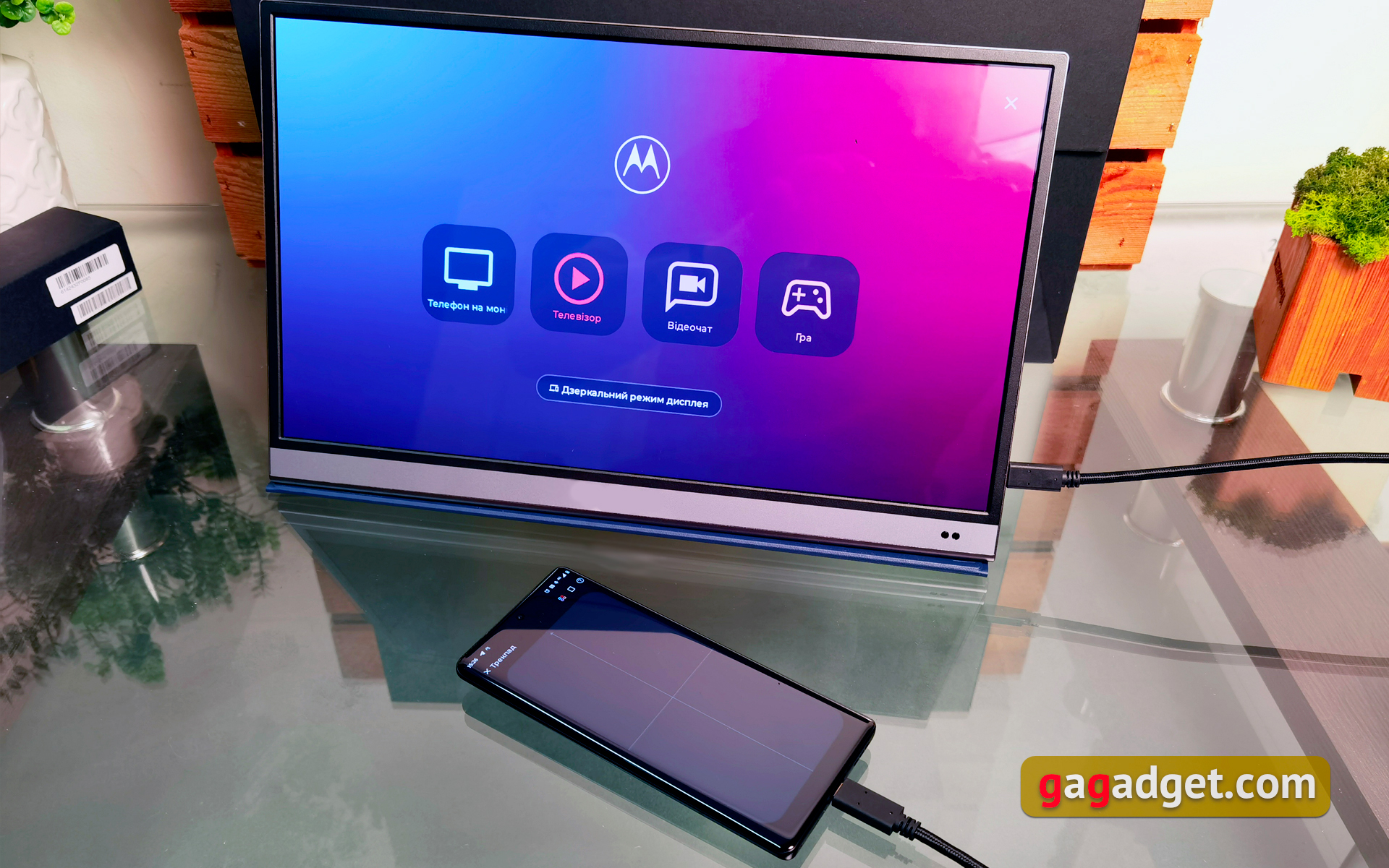 Aby wygodnie korzystać z przenośnego monitora, wystarczy podłączyć smartfon za pomocą kabla. Nie jest wymagane dodatkowe zasilanie.