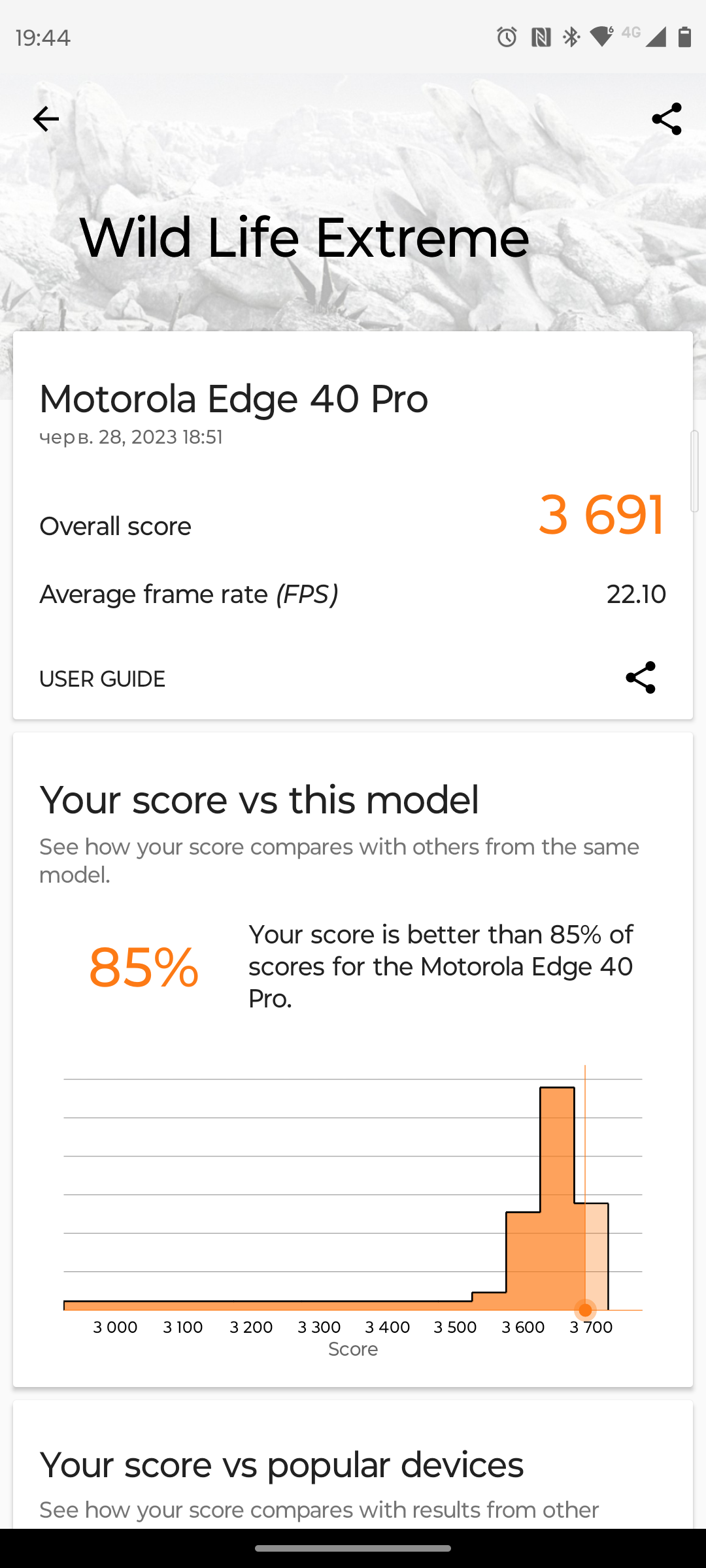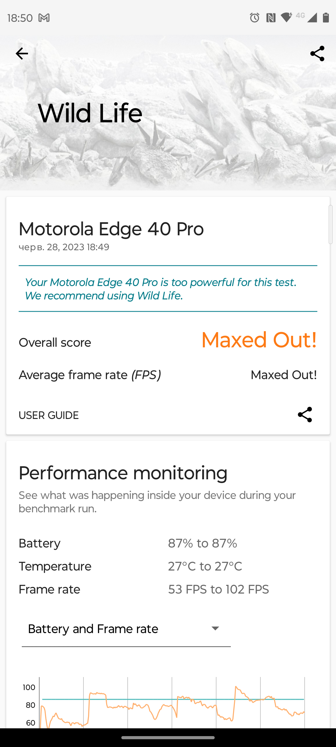 Teraz trochę więcej o grach. Motorola Edge 40 Pro posiada własną aplikację do gier, jak wszystkie obecne smartfony. Jego funkcjonalność jest ogólnie standardowa: istnieje lista wszystkich zainstalowanych gier, można dostosować wydajność, wyłączyć powiadomienia, zablokować poziom jasności, wyświetlić FPS, nagrywać wideo z procesu gry i tak dalej. Wszystkie nowoczesne gry na najwyższych możliwych ustawieniach działają ze stabilną prędkością 60 FPS (lub 120 FPS, jeśli są obsługiwane).