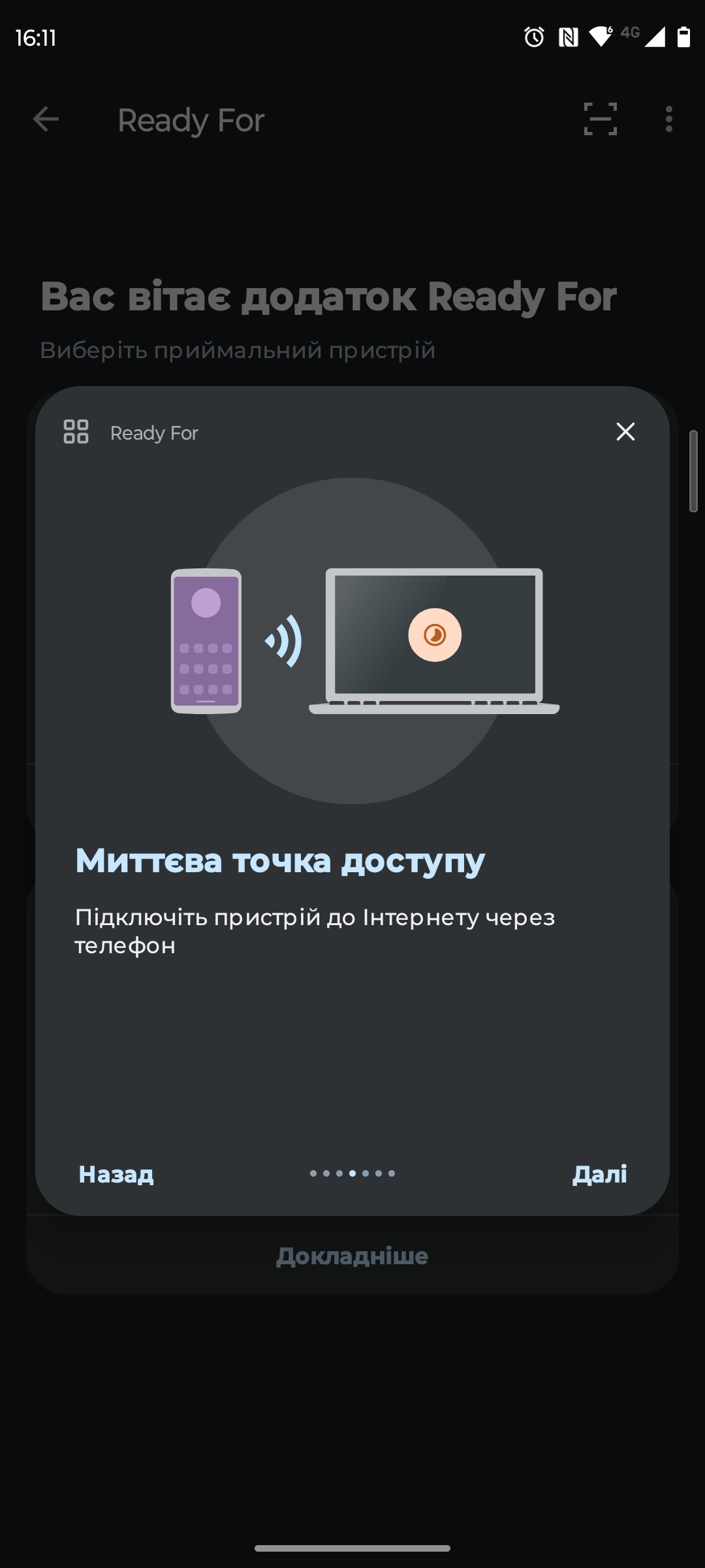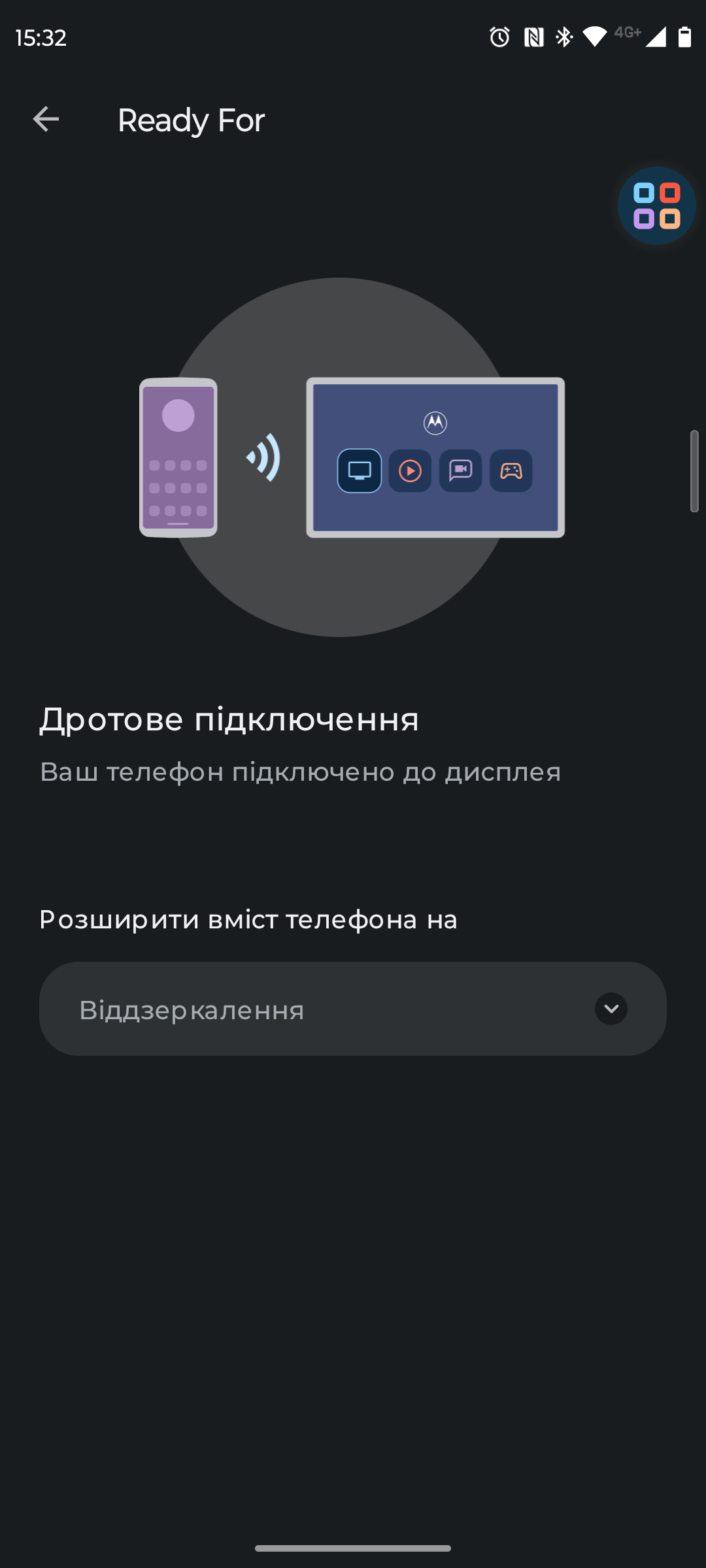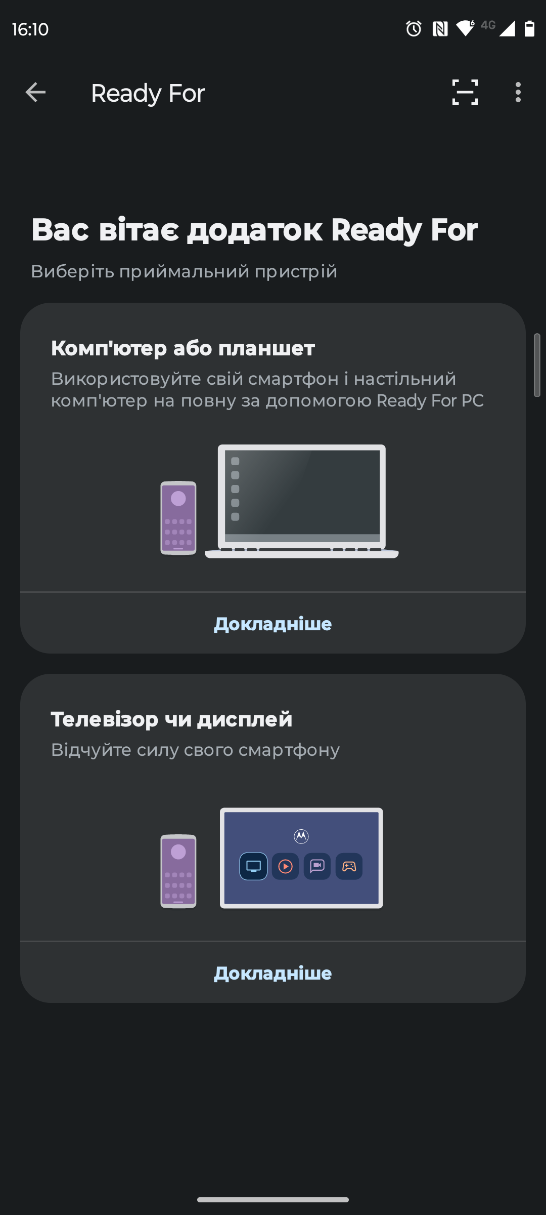 Kolejną ciekawą funkcją jest Ready For. Smartfon można podłączyć za pomocą kabla lub Miracast do zewnętrznego monitora lub telewizora. Dostępny jest tryb pulpitu z interfejsem podobnym do zwykłego systemu Windows, rodzaj trybu rozrywki z sekcjami TV (usługi wideo online), grami, czatem wideo (przy użyciu smartfona jako kamery internetowej) i dublowaniem obrazu ze smartfona. Ekranu smartfona można używać jako touchpada. Możliwe jest także podłączenie klawiatury, myszy lub gamepada przez Bluetooth.