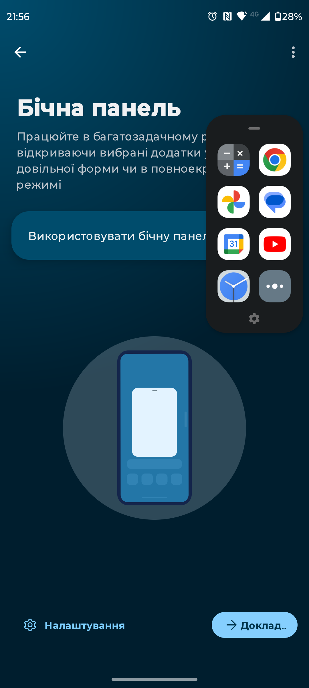 Opcje nawigacji po systemie są standardowe: gesty lub przyciski. Dodatkowo dostępny jest zestaw gestów do włączania i wyłączania ekranu, sterowania jedną ręką i pracy na podzielonym ekranie, a także pasek boczny z zestawem najczęściej używanych aplikacji.