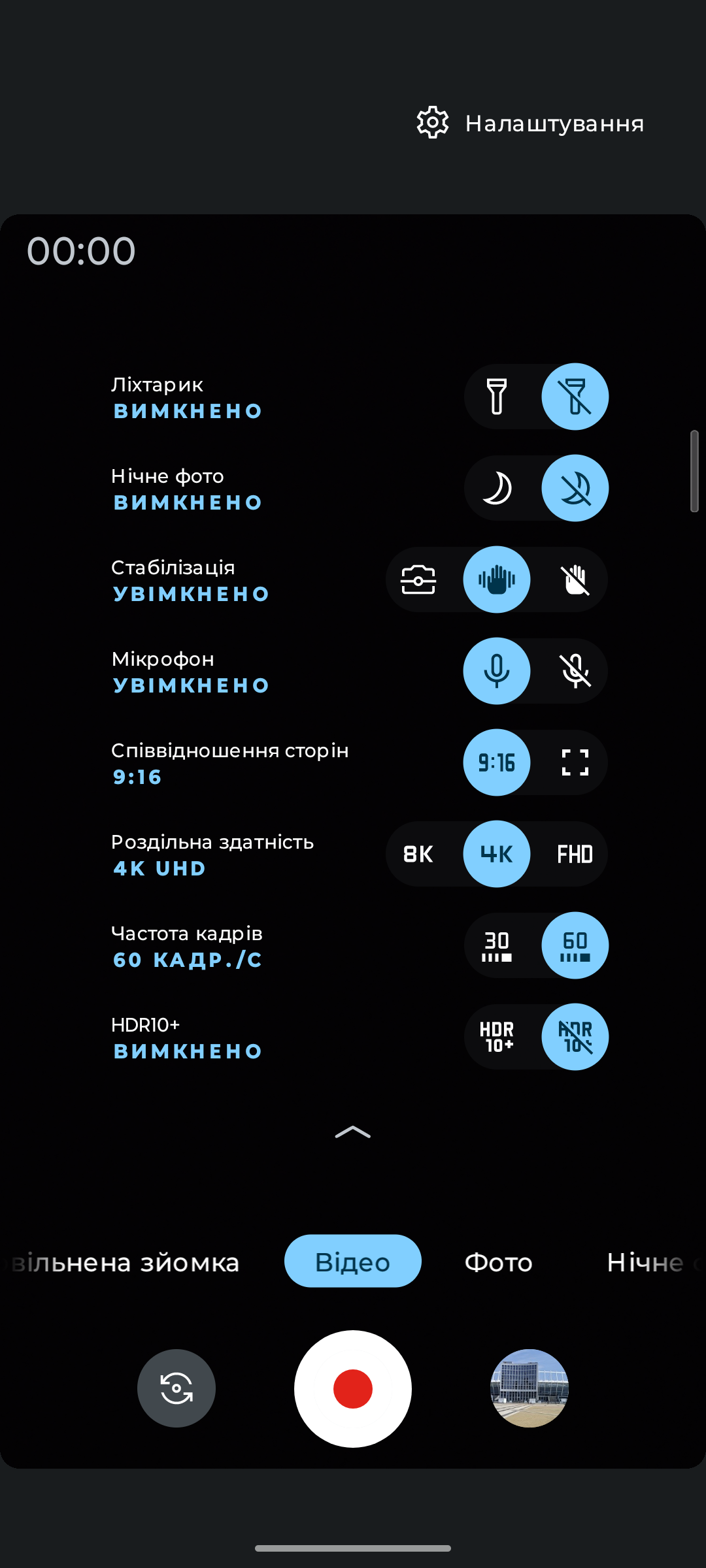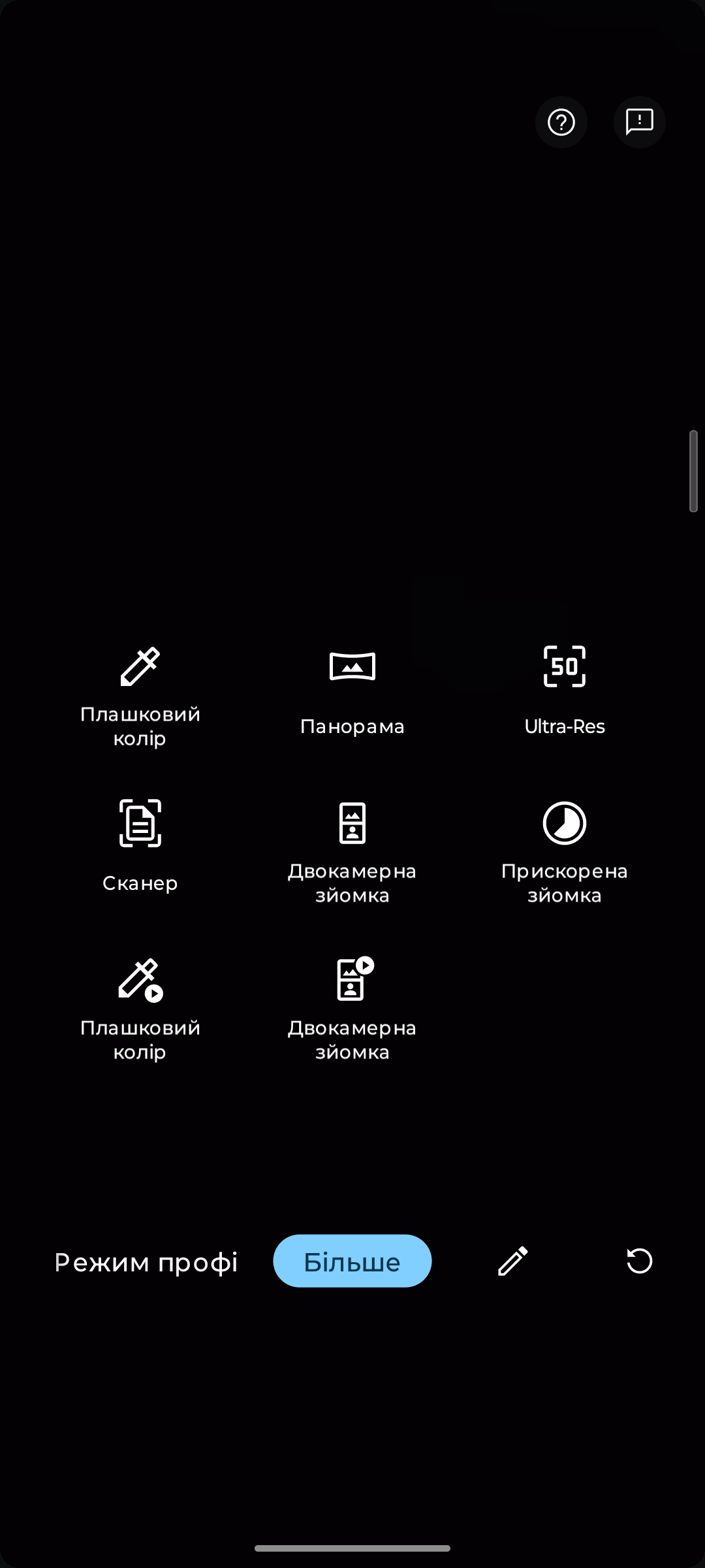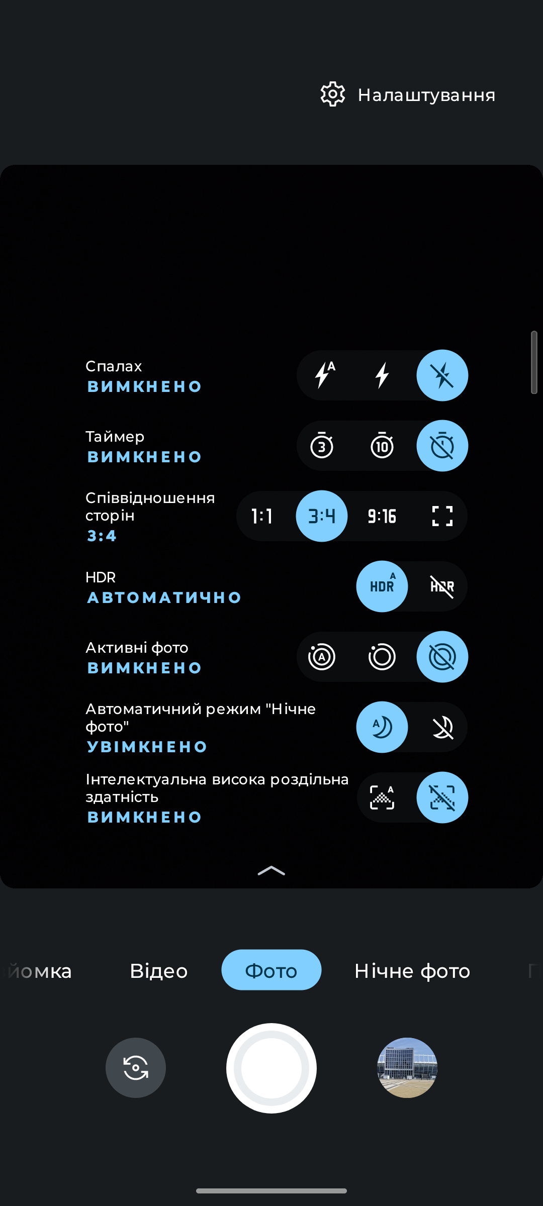 Aplikacja aparatu ma przyjazny dla użytkownika interfejs. Znajduje się w niej znana karuzela trybów, oddzielna sekcja z dodatkowymi trybami oraz zestaw podstawowych ustawień bezpośrednio na ekranie (lampa błyskowa, proporcje, HDR). Wszystkie dodatkowe ustawienia (timer, rozdzielczość, liczba klatek na sekundę, stabilizacja) znajdują się w rozwijanym menu.