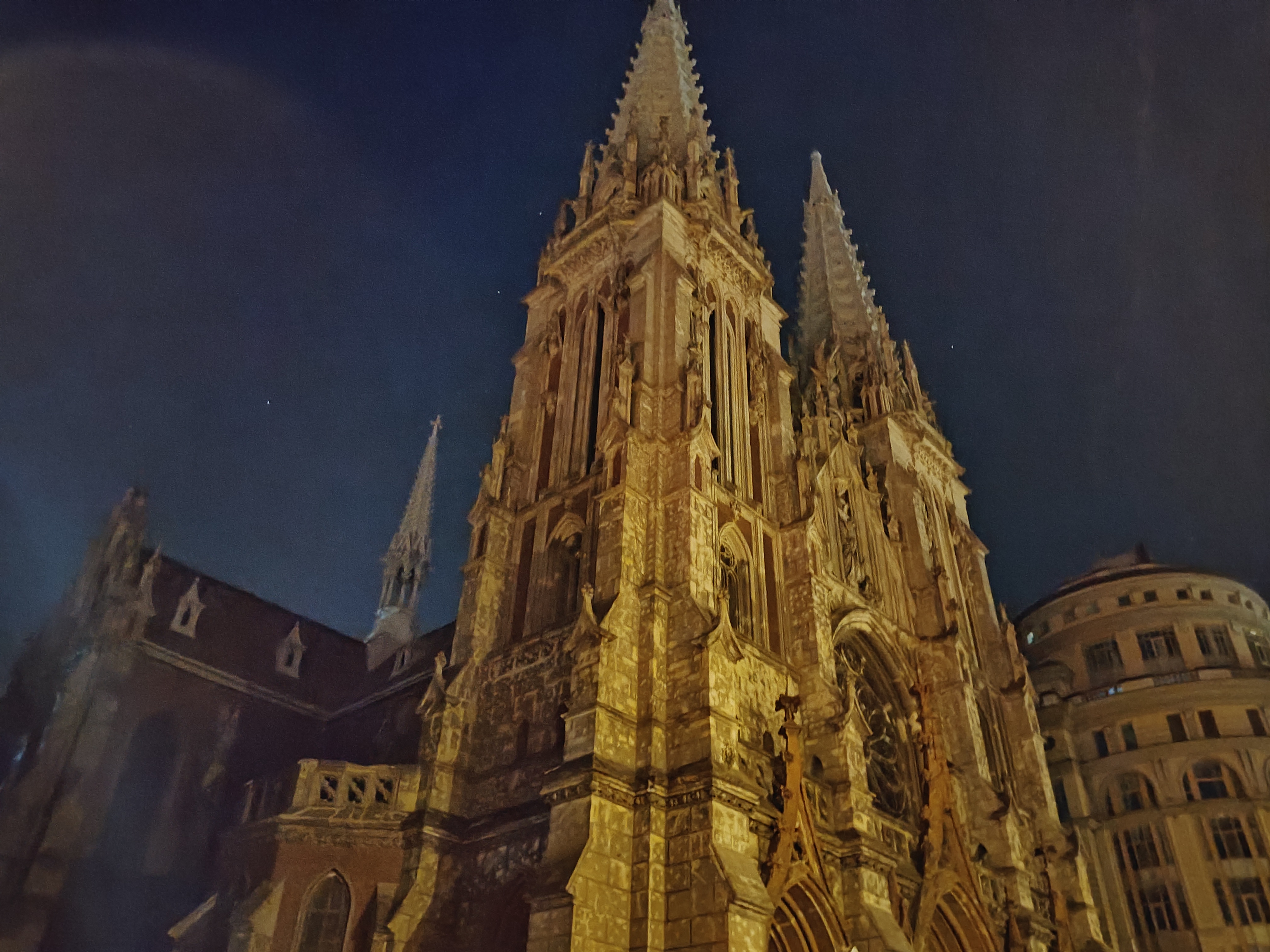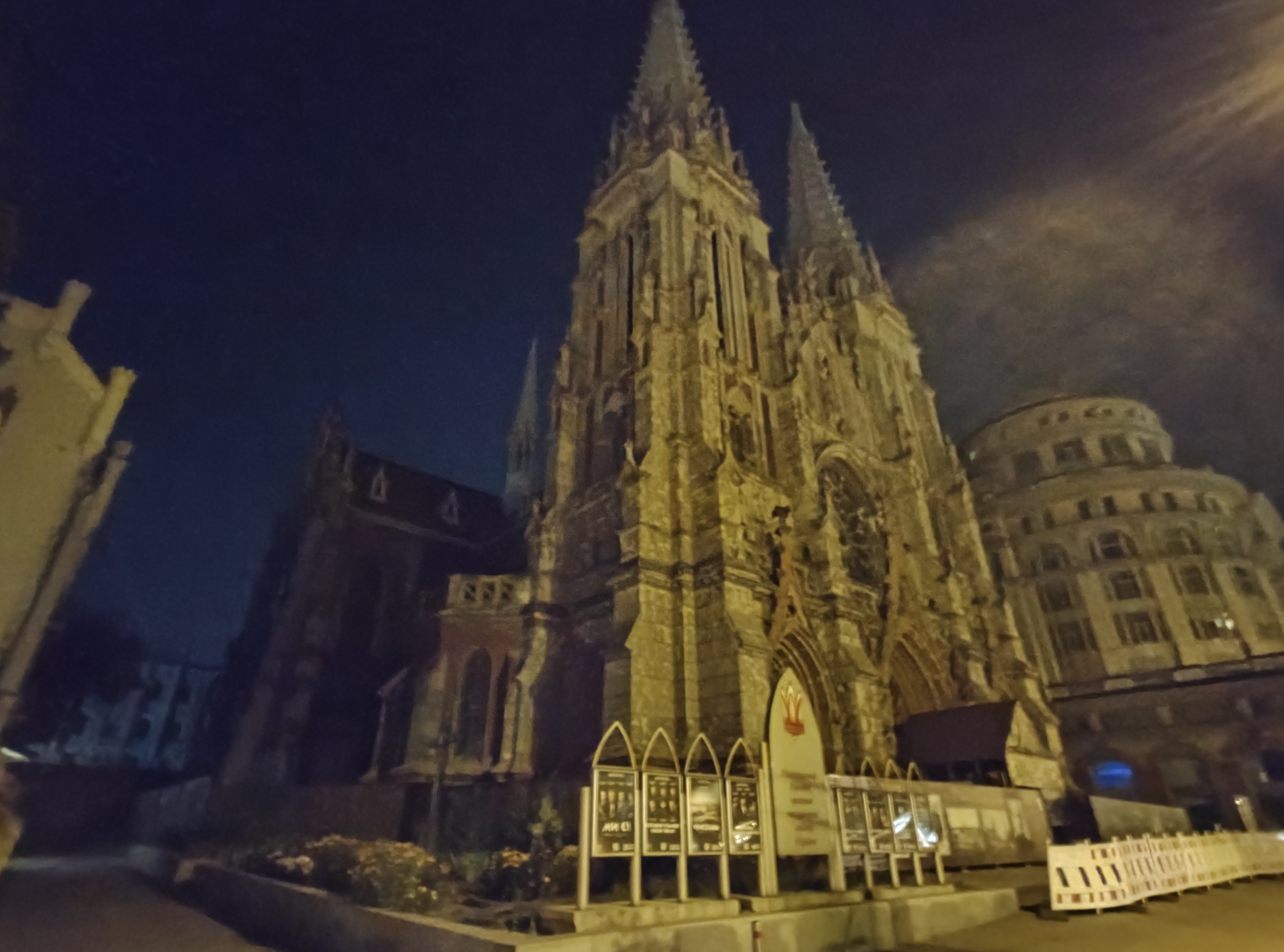 Ultraszerokokątny aparat może robić dobre zdjęcia przy wystarczającym oświetleniu. W nocy szczegółowość spada bardzo zauważalnie, pojawia się dużo szumów, a zdjęcia stają się rozmazane: