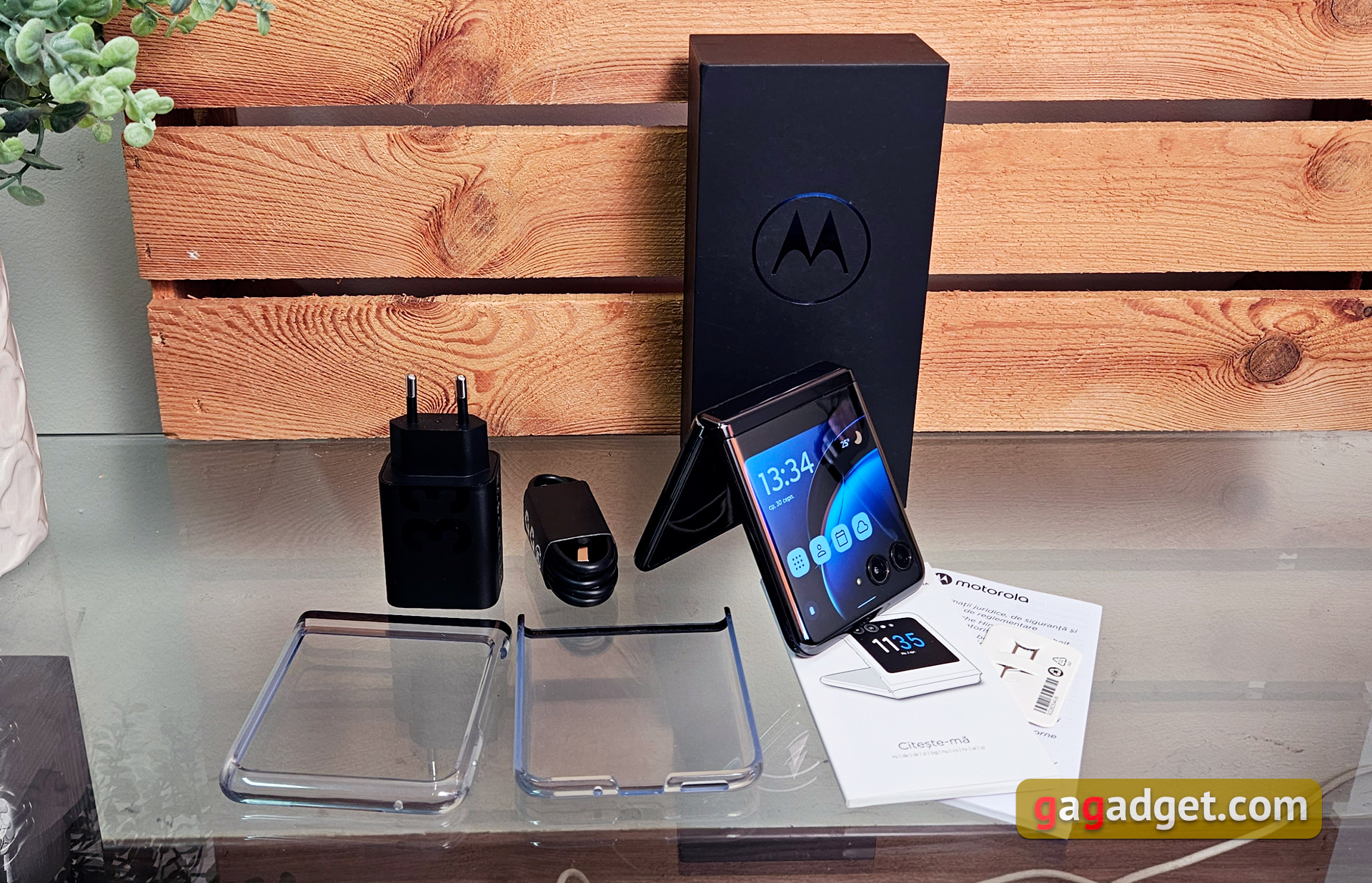Motorola Razr 40 Ultra jest zapakowana w czarne pudełko z logo Motorola i nazwą modelu. Motorola pakuje wszystkie swoje smartfony bardzo dobrze, w przeciwieństwie do niektórych producentów. Oprócz samego smartfona, opakowanie zawiera zasilacz 33W, kabel USB Type-C, dwuczęściowy ochronny bumper, narzędzie do tacki na kartę SIM i dokumentację. Zderzak ochronny wykonany jest z przezroczystego błyszczącego plastiku. Nieco psuje wygląd smartfona, ale spełnia swoją funkcję.