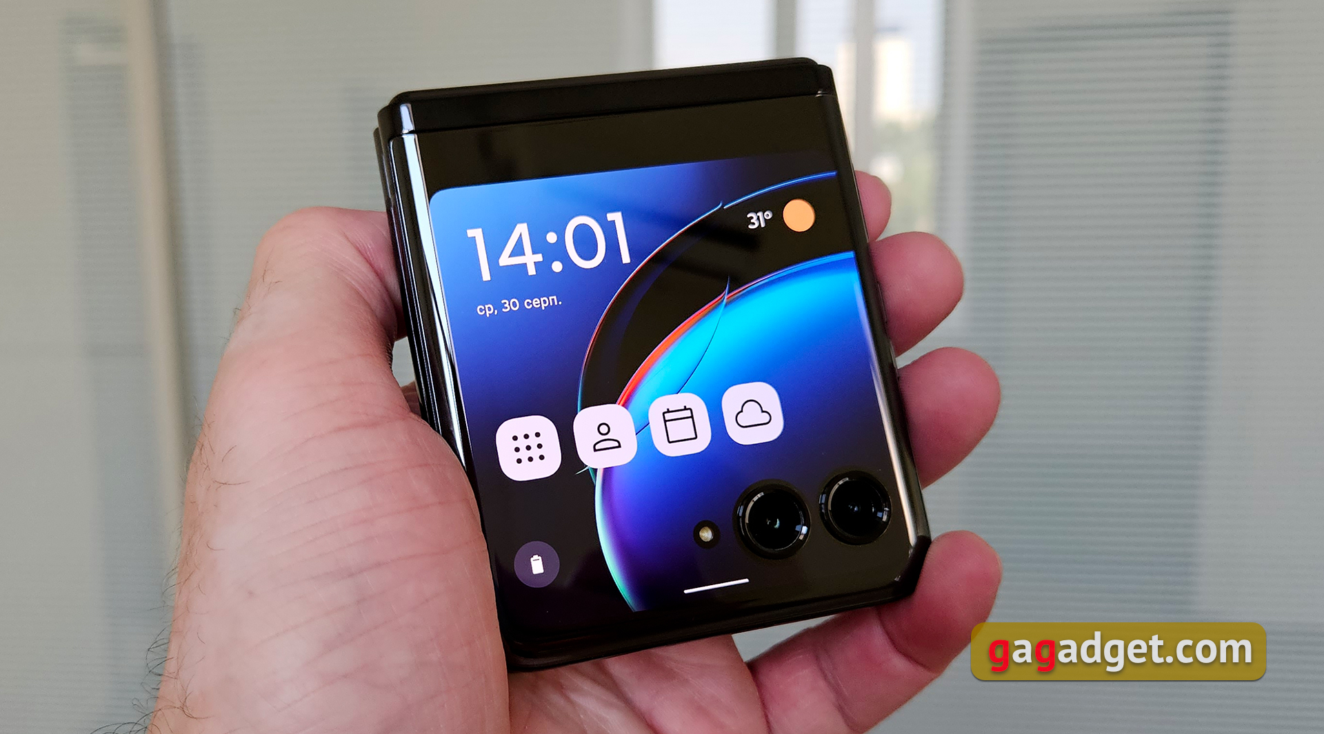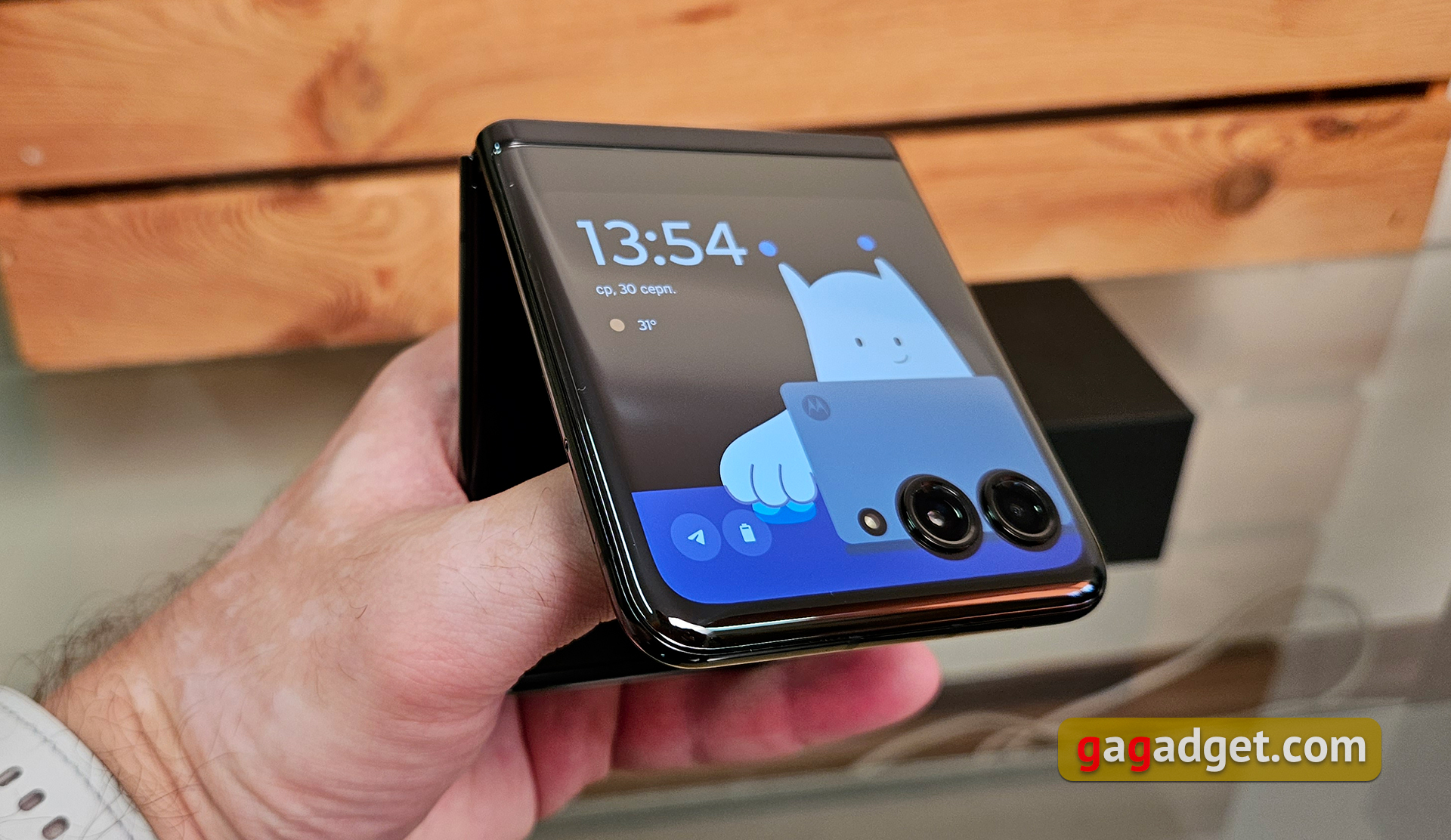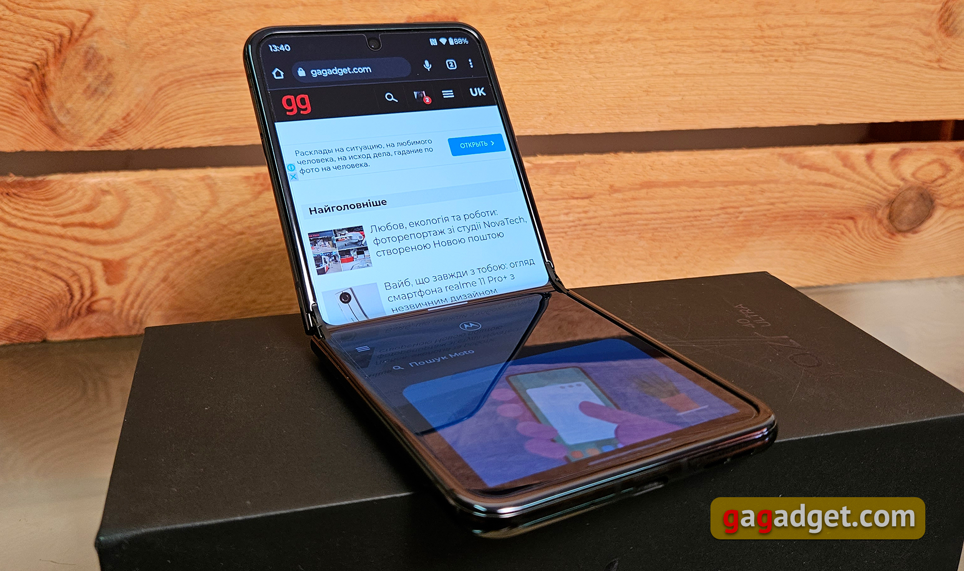 Mówiąc o innych przypadkach użycia, można nie trzymać smartfona, ale położyć go na stole i przewijać jakość kanału informacyjnego lub mediów społecznościowych. Lub czytać książkę w podobnej pozycji. Jednak do takich zastosowań ciekawiej wyglądają smartfony z elastycznymi ekranami, które po rozłożeniu zamieniają się w coś podobnego do tabletu. Biorąc pod uwagę rozmiar wewnętrznego wyświetlacza Motoroli Razr 40 Ultra, nadal wygodniej jest używać go do surfowania po Internecie, komunikatorów, gier i nie tylko w formacie zwykłego smartfona.