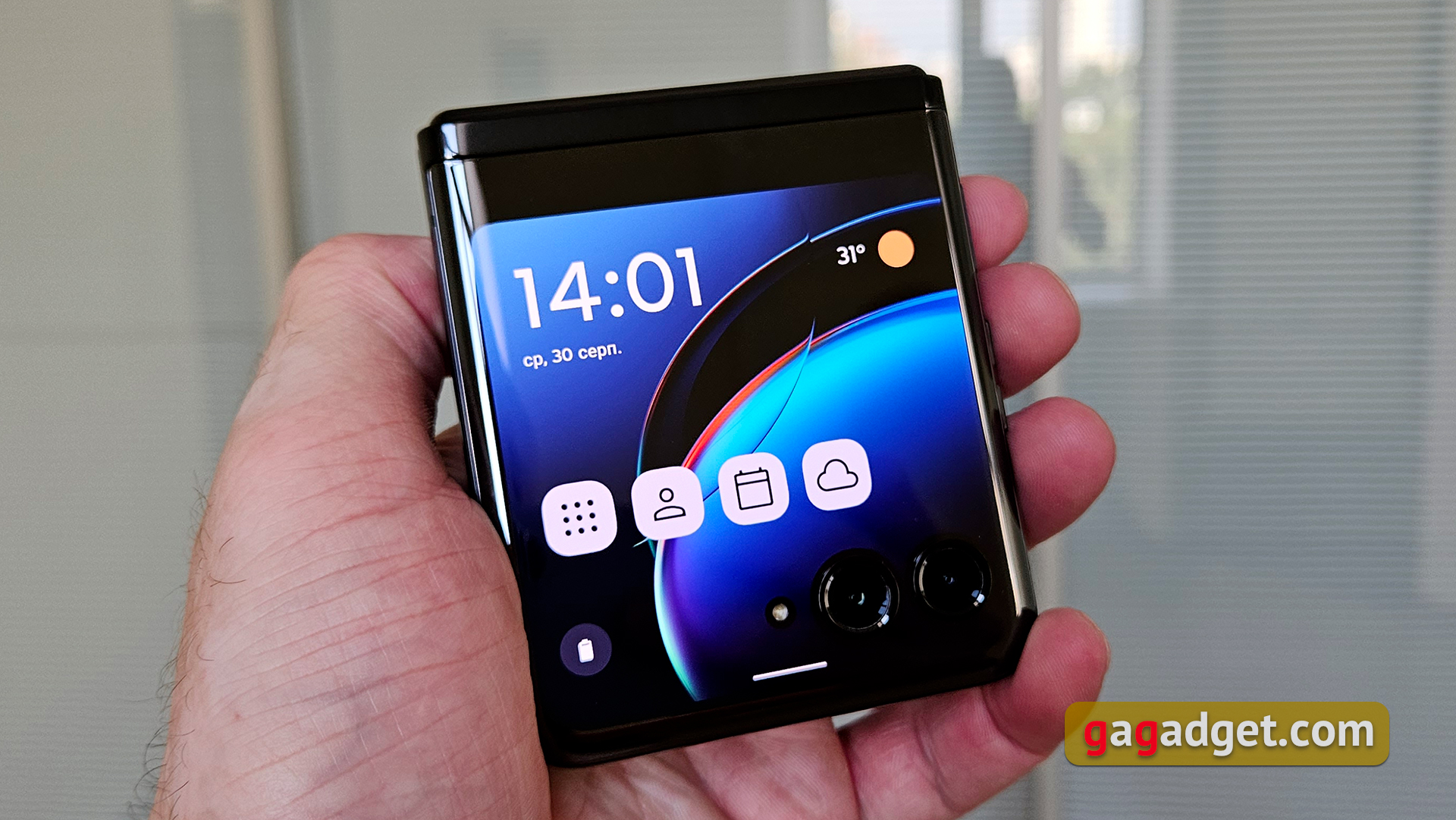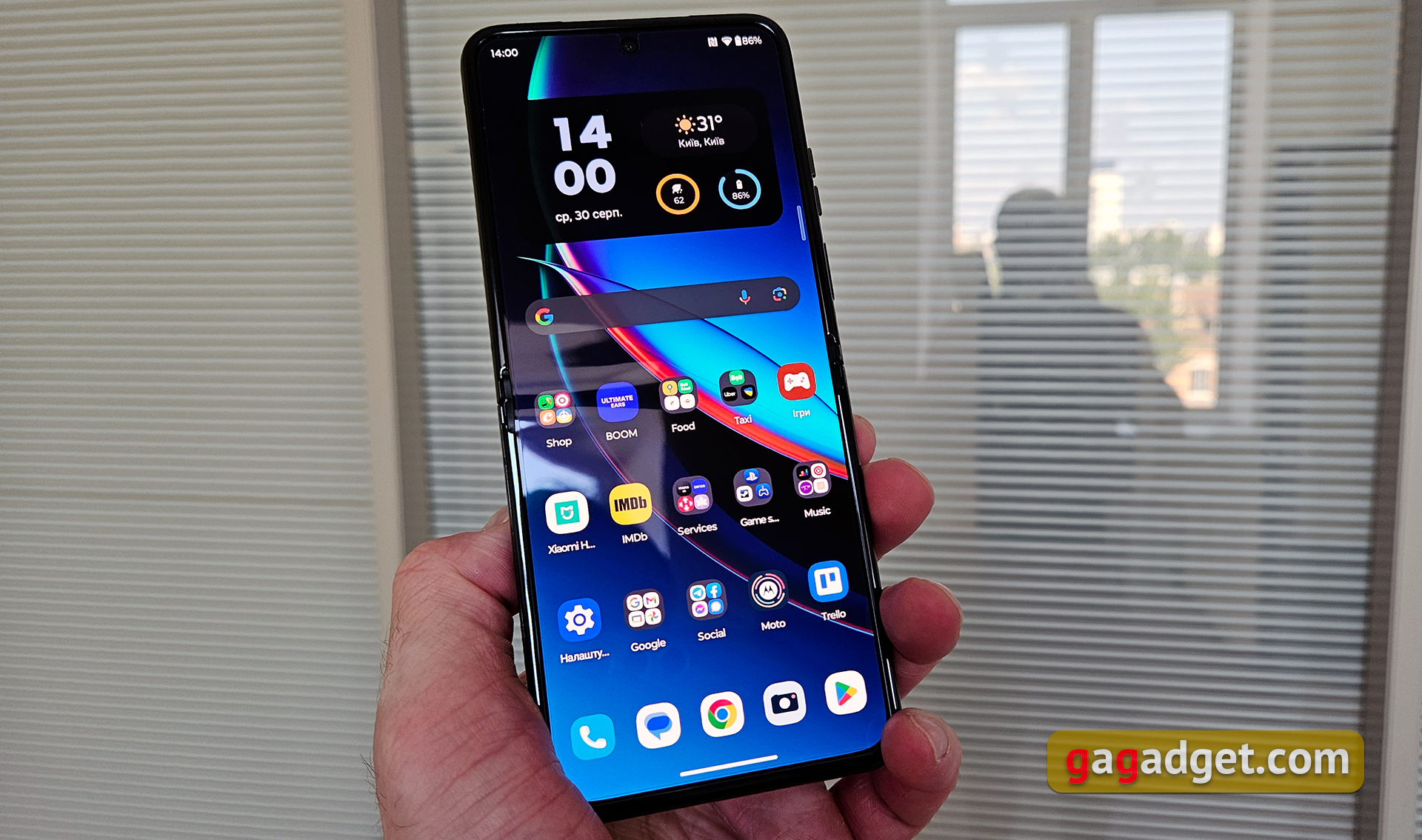 Zdecydowana większość standardowych aplikacji działa na zewnętrznym ekranie Razr 40 Ultra. W ustawieniach można wybrać wszystkie niezbędne aplikacje, które będą uruchamiane na ekranie zewnętrznym po zamknięciu smartfona. Na ekranie pojawi się powiadomienie z propozycją kontynuowania pracy. W ten sposób działa wszystko, w tym komunikatory, mapy, odtwarzacze Google Wallet (tak, można płacić bez otwierania smartfona), a nawet niektóre gry. Z zewnętrznego ekranu można w pełni odpowiadać na wiadomości. Ale jest tu pewien niuans. Działa to tylko ze standardową klawiaturą Gboard. SwiftKey niestety odmówił pracy. Na zewnętrznym wyświetlaczu można również wybrać tapety, motywy i wszystko inne.