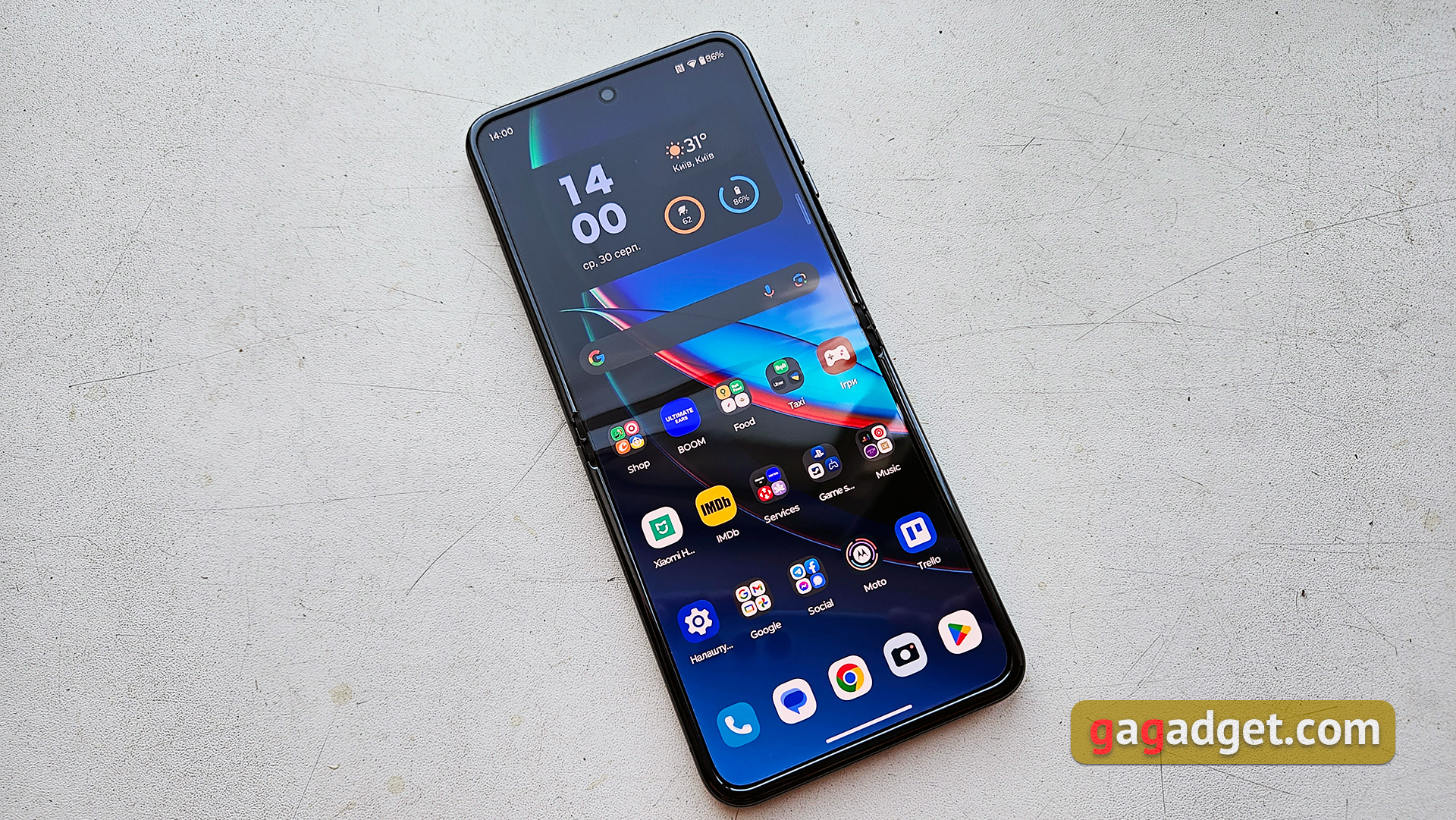 Podobnie jak wszystkie obecne smartfony Motorola, Razr 40 Ultra działa na prawie czystym Androidzie 13. System jest dobrze zoptymalizowany, działa bardzo szybko i nie było żadnych problemów, glitchy czy innych nieprzyjemnych momentów podczas użytkowania. Interfejs jest standardowy: pulpity, widżety, kurtyna z dużymi przełącznikami, osobne menu ze wszystkimi aplikacjami. Istnieją ustawienia siatki, tapety, kolorów, motywów i czcionek.