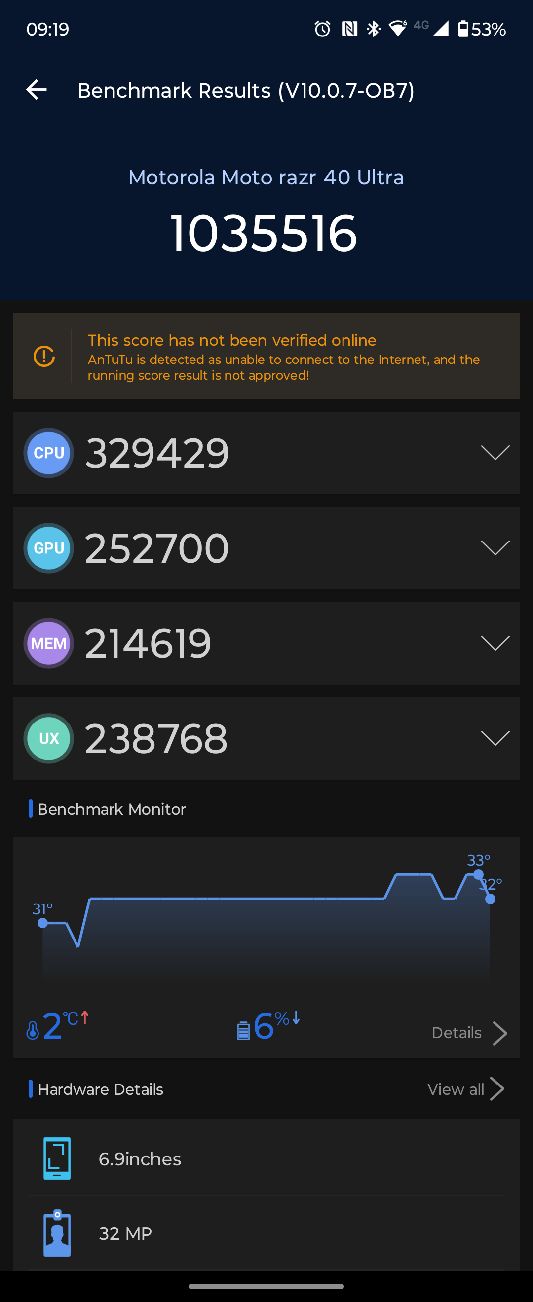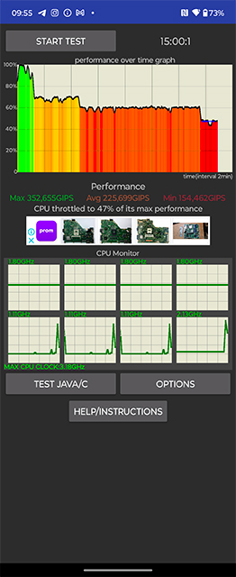Ale chłodzenie nie jest tak dobre. Podobnie jak w przypadku zdecydowanej większości nowoczesnych smartfonów z klapką. Kształt obudowy nie pozwala na dobry system chłodzenia, a gęsty układ wewnątrz nie przyczynia się do dobrego odprowadzania ciepła. Smartfon niemal natychmiast zaczyna się dławić przy maksymalnym obciążeniu, a wydajność może spaść do około 50%, co nie jest zbyt dobre. Obudowa również znacznie się nagrzewa. Chociaż w codziennym użytkowaniu nagrzewanie obserwuje się dopiero po 10-15 minutach w niektórych nowoczesnych grach.