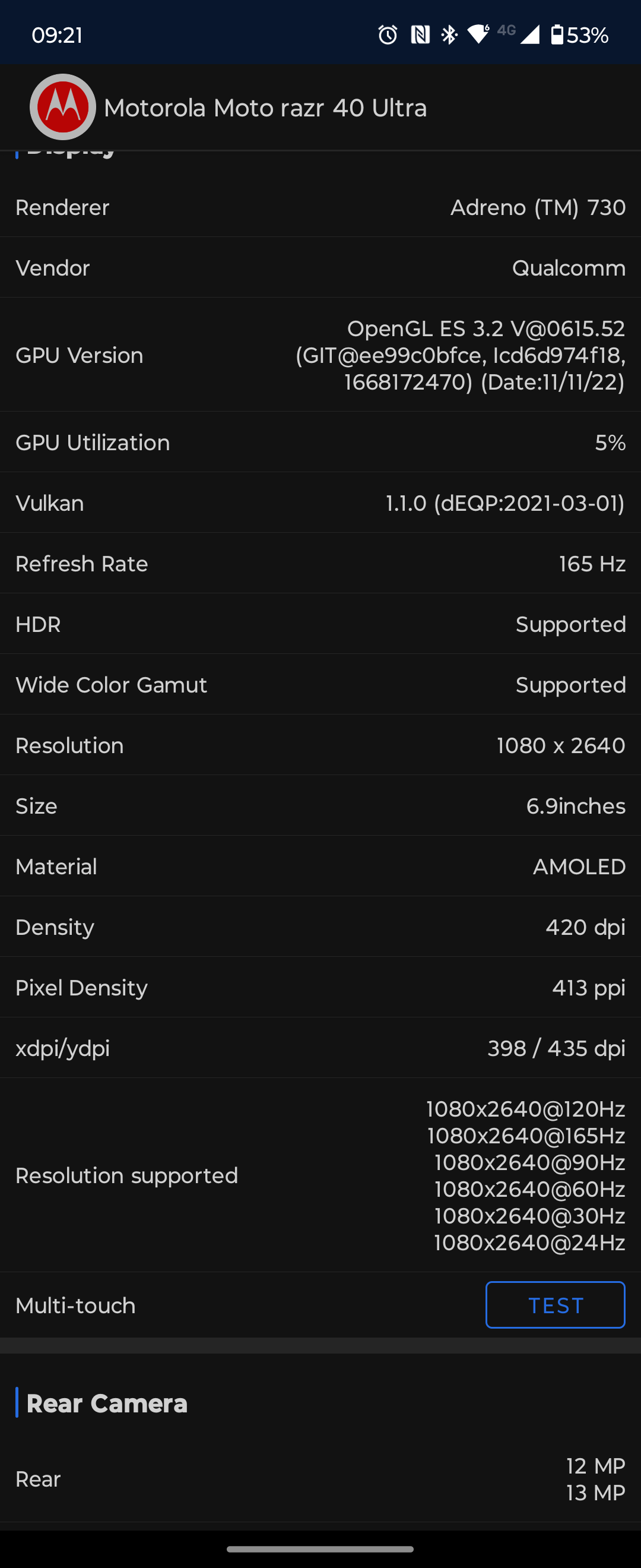 - Motorola Razr 40 Ultra ma wewnętrzny składany ekran o częstotliwości odświeżania 165 Hz...