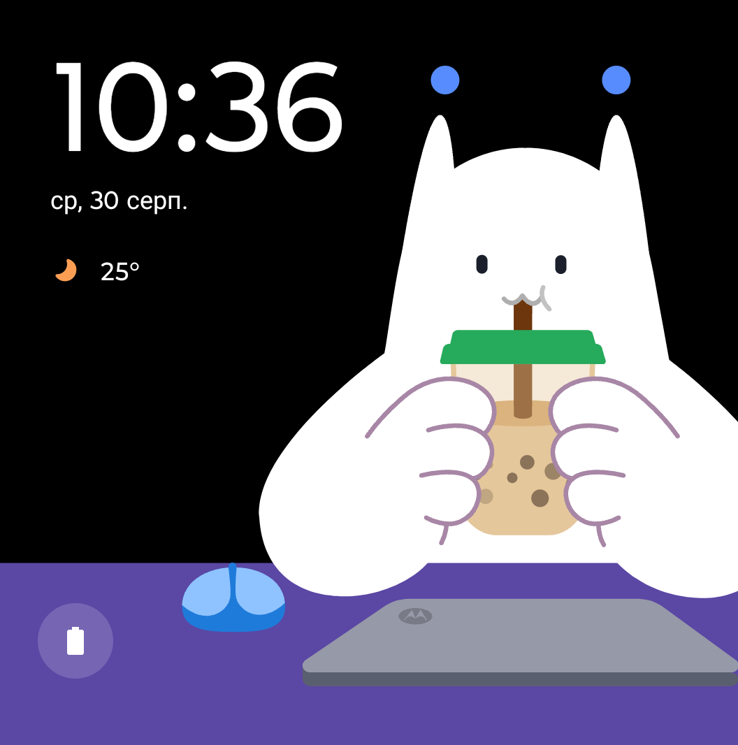 Istnieje wiele różnych projektów ekranu głównego. Motorola postanowiła nie ograniczać się do tych użytecznych i funkcjonalnych i dodała wariant ze swego rodzaju maskotką w postaci animowanego stworka przypominającego kota.