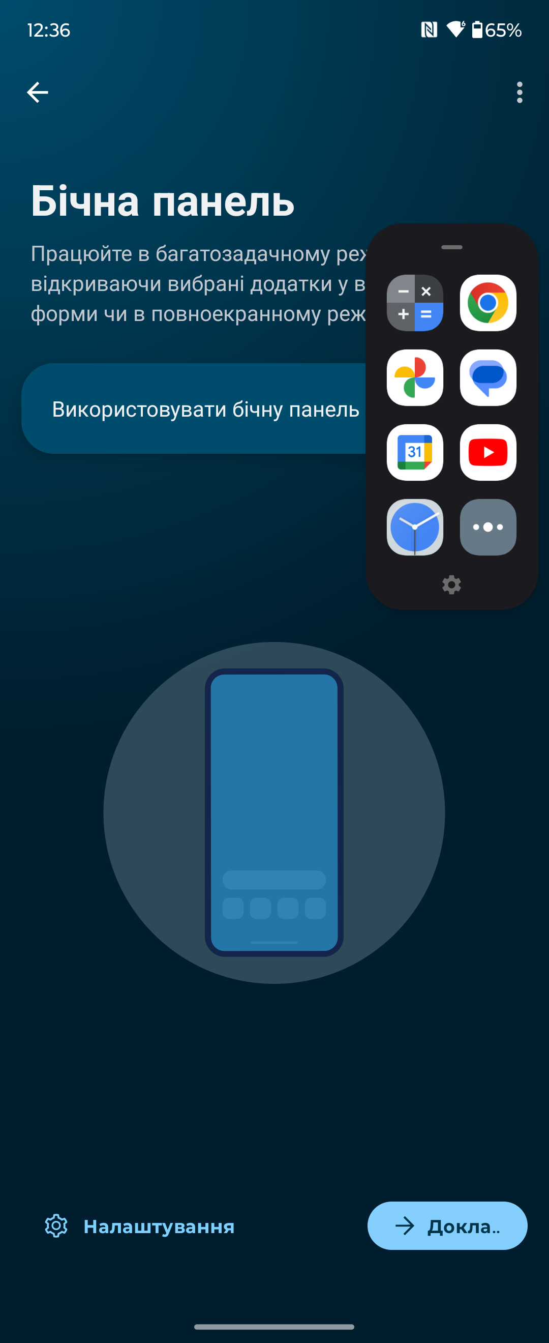 Istnieją opcje przycisków i gestów do nawigacji po systemie. Istnieją dodatkowe gesty do aktywacji lub dezaktywacji ekranu, sterowania jedną ręką, podziału ekranu i paska bocznego z zestawem najczęściej używanych aplikacji.