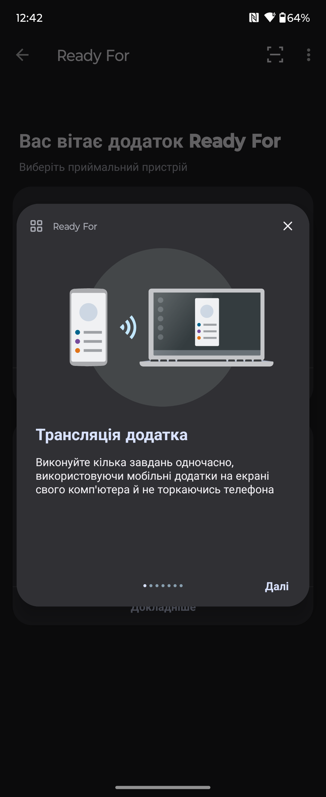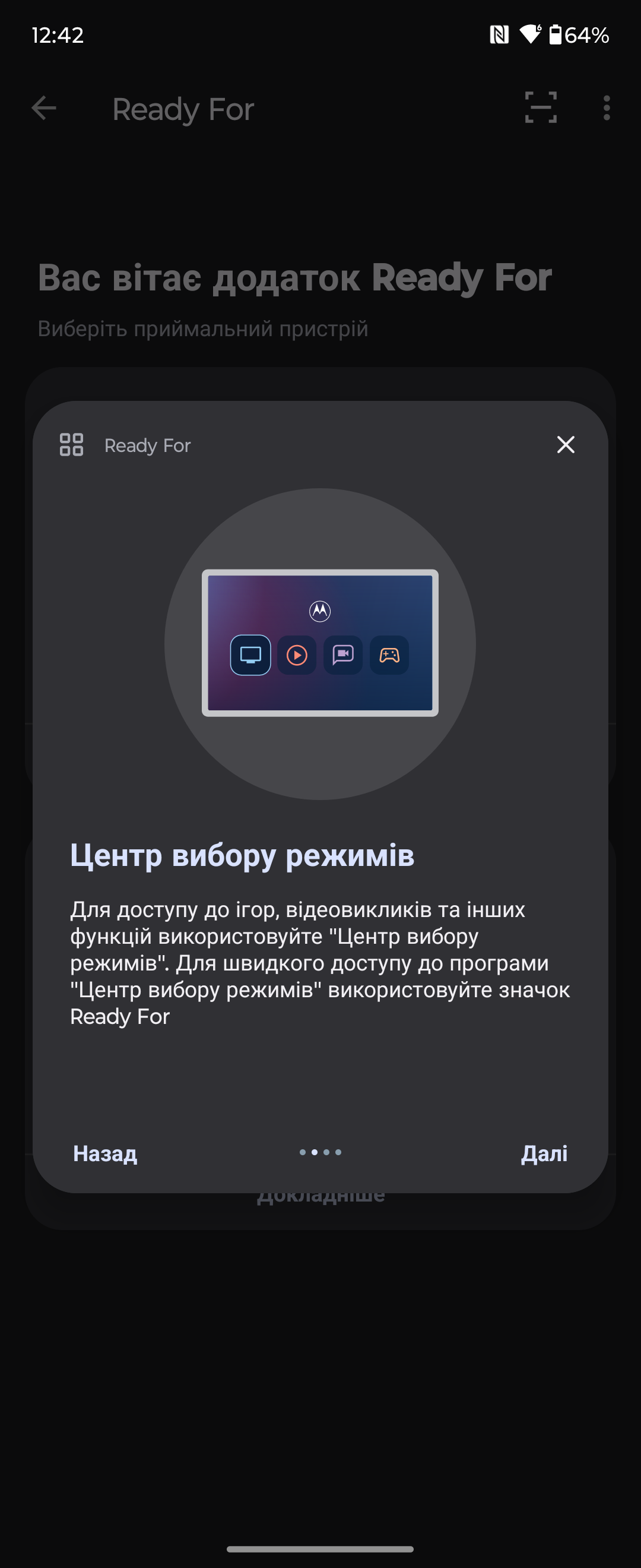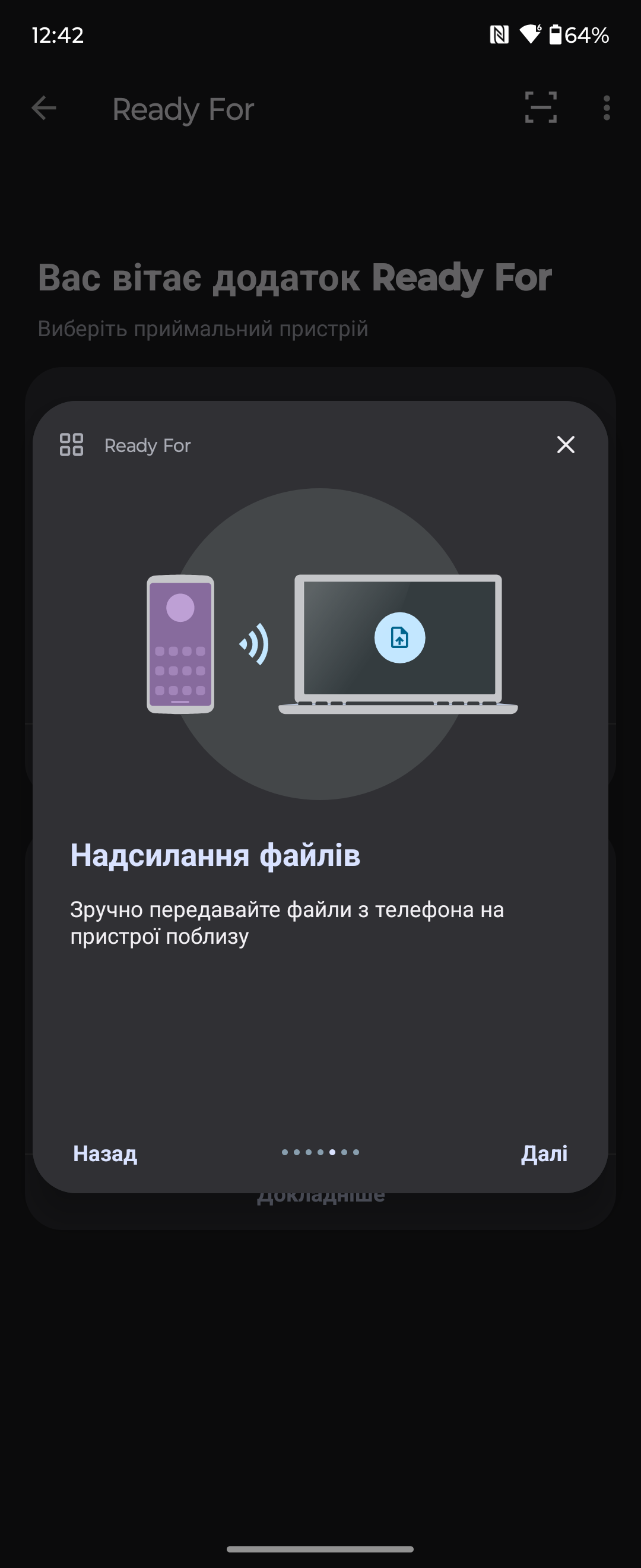 Smartfon obsługuje tryb Ready For desktop. Można go podłączyć do zewnętrznego monitora lub telewizora. Dostępny jest tryb z pulpitem podobnym do systemu Windows oraz tryb rozrywkowy z telewizją (usługi wideo online), grą, czatem wideo (przy użyciu smartfona jako kamery internetowej) i odbiciem lustrzanym obrazu smartfona. Można podłączyć klawiaturę, mysz lub gamepad przez Bluetooth, a także używać ekranu smartfona jako touchpada.