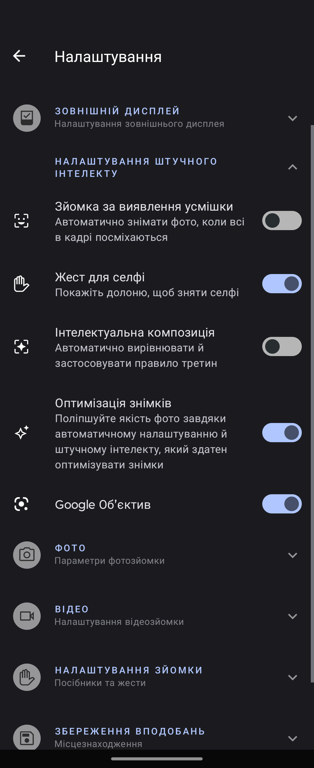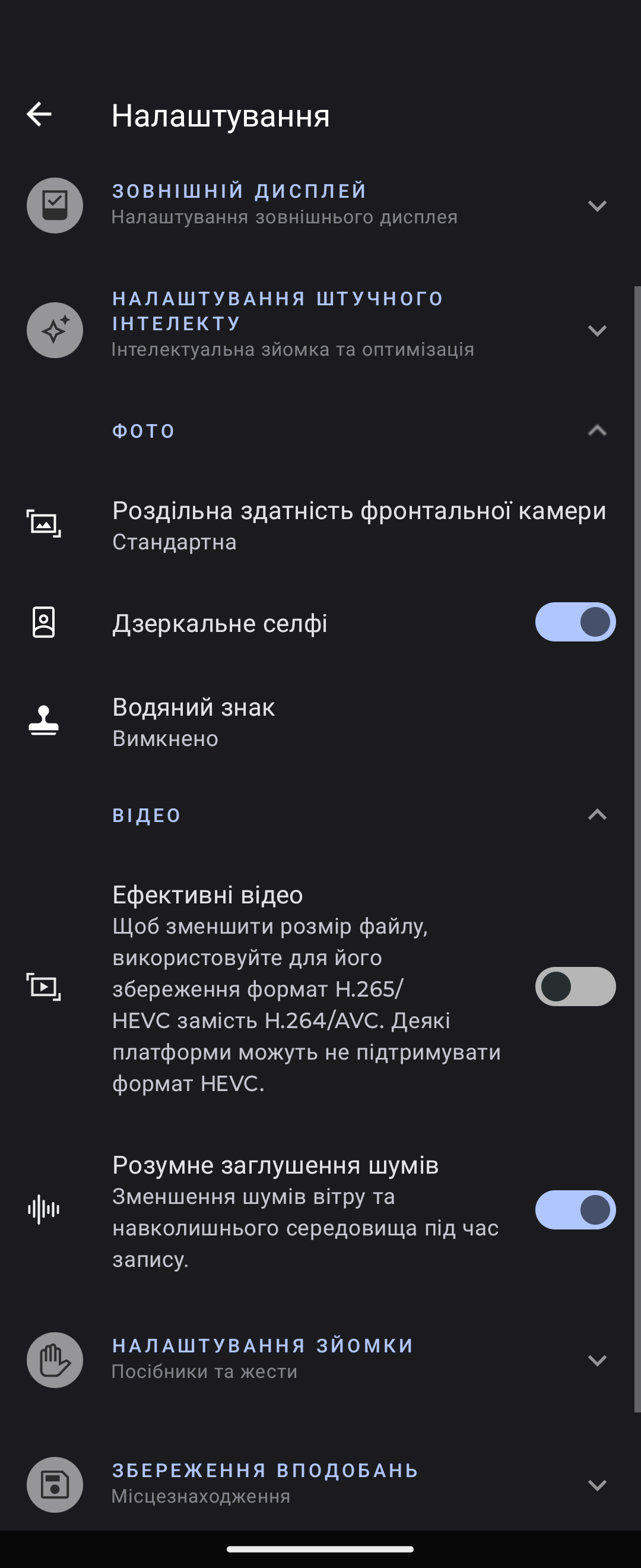 Aplikacja aparatu jest intuicyjna i przejrzysta. Znajduje się w niej znana karuzela trybów, osobna sekcja z dodatkowymi trybami (w tym profesjonalnymi) oraz wszystkie podstawowe ustawienia na ekranie (lampa błyskowa, proporcje, HDR). Rozwijane menu zawiera wszystko inne, w tym liczbę klatek na sekundę i rozdzielczość wideo.