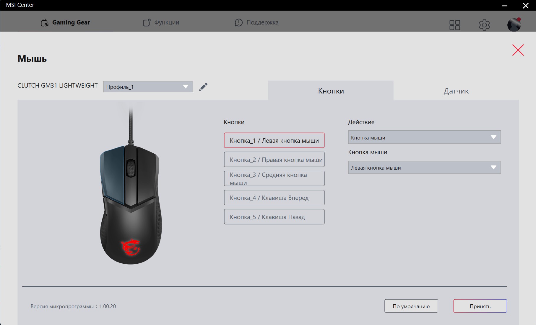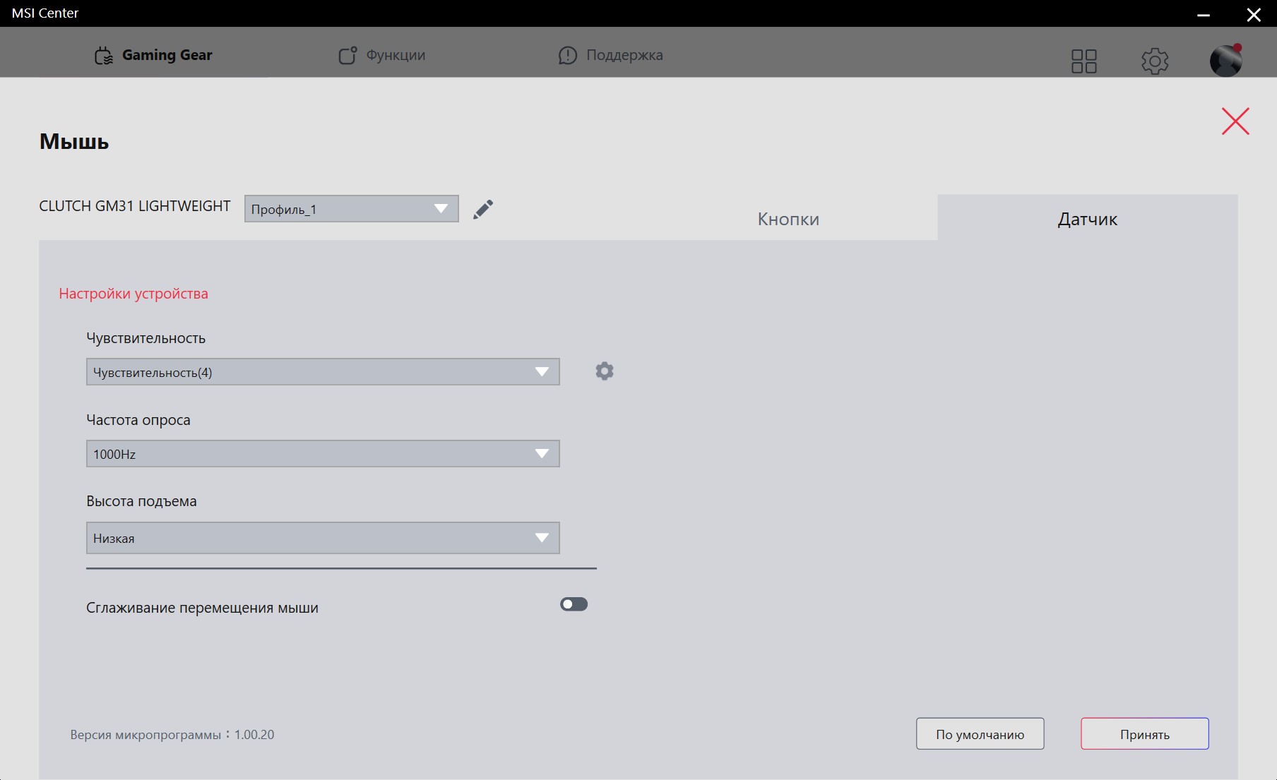 Główną różnicą pomiędzy MSI Clutch GM31 Lightweight a Wireless jest sensor. Zamiast energooszczędnego PixArt PAW3311 zainstalowano nie najnowszy, ale bardzo wysokiej jakości optyczny PixArt PMW3360, który już wielokrotnie widzieliśmy w topowych modelach. Posiada rozdzielczość 12 000 DPI zdolną do śledzenia ruchów z prędkością ponad 250 cali na sekundę i przyspieszeniem do 50g. Maksymalna częstotliwość pollingu wynosi 1000 Hz. Ten czujnik jest znany wielu graczom i zawsze działa idealnie. W przypadku MSI Clutch GM31 Lightweight obyło się bez niespodzianek: żadnych awarii, zacięć kursora czy innych problemów.