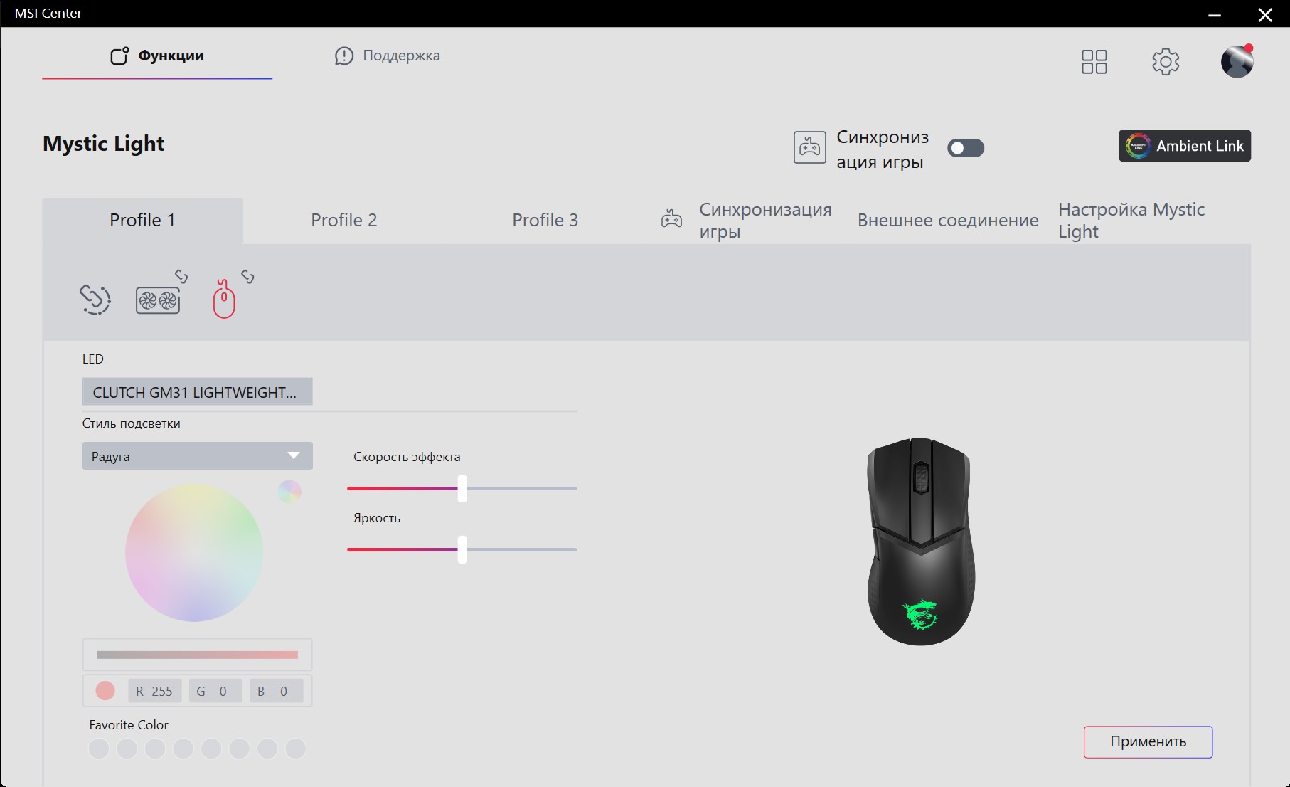 Autorskie oprogramowanie MSI Center odpowiada za konfigurację wszystkich urządzeń peryferyjnych MSI. Recenzowaliśmy go już w poprzedniej recenzji. Ogólnie rzecz biorąc, prawie wszystko, czego potrzebujesz, jest tam, ale jak dotąd oprogramowanie wygląda nieco surowo, a niektóre elementy nie są całkiem logicznie rozmieszczone. Główne ustawienia dotyczą definicji przycisków, profili, poziomów DPI, częstotliwości, antyaliasingu oraz wysokości separacji od powierzchni. Ustawienia podświetlenia umieszczono w osobnej sekcji Mystic Light.