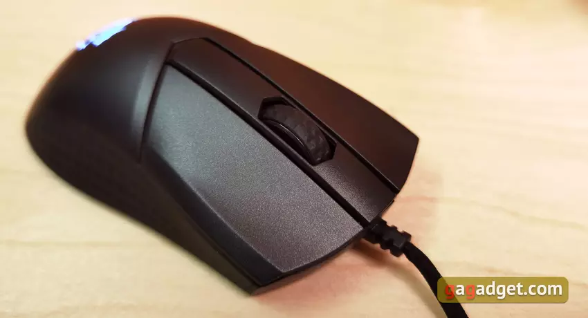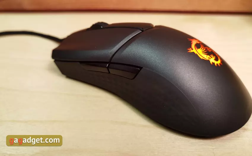 Boki mają gumową powłokę z teksturą, która pomaga pewniej trzymać mysz podczas użytkowania. Dodatkowe przyciski są błyszczące, mają standardowy kształt, ale separacja między nimi jest prawie niewyczuwalna.