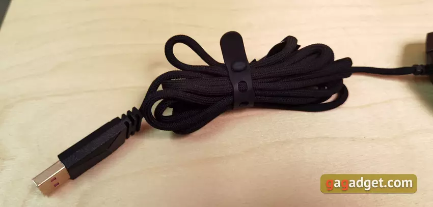 Kabel posiada dość masywne i pewne zabezpieczenie przed zginaniem w miejscu mocowania do myszy. Który z kolei jest umieszczony odpowiednio wysoko, dzięki czemu kabel nie przylega do powierzchni.