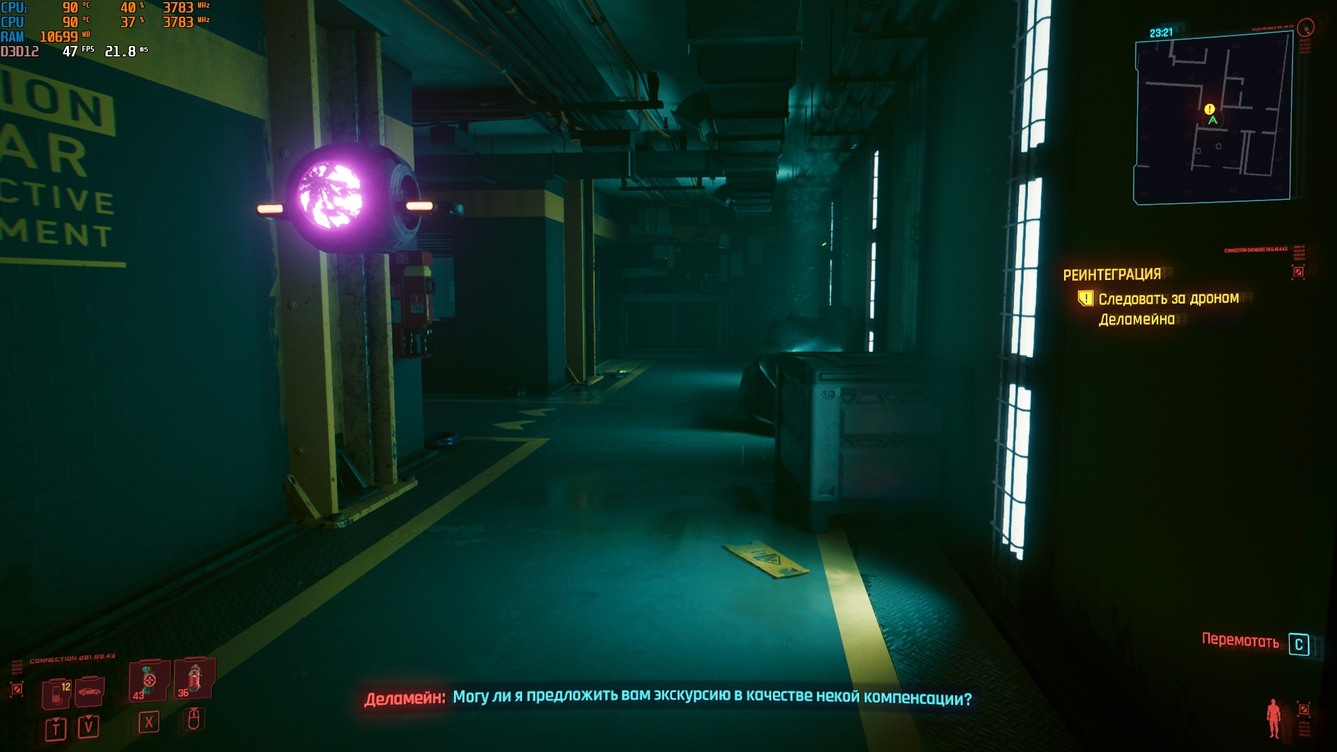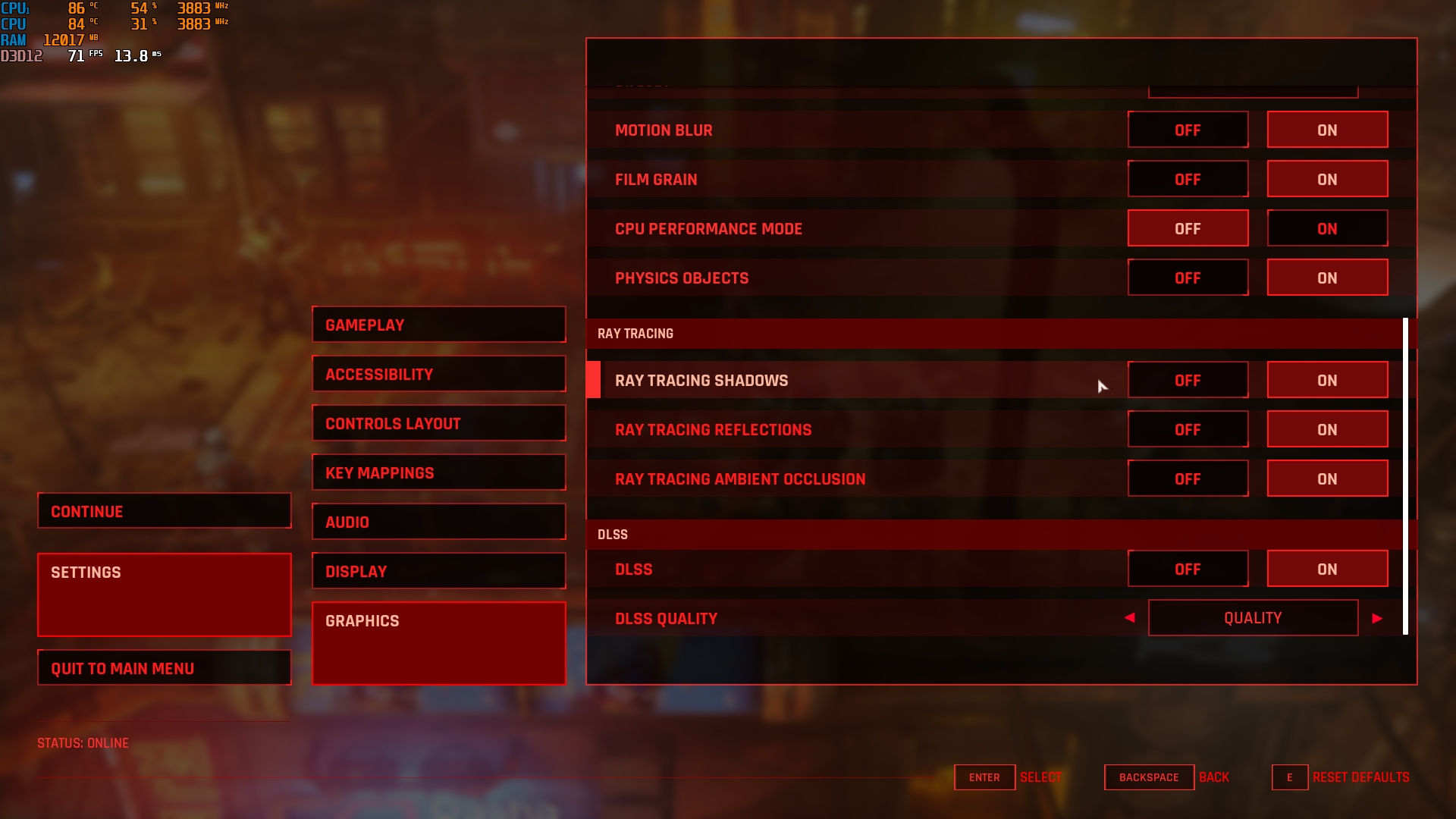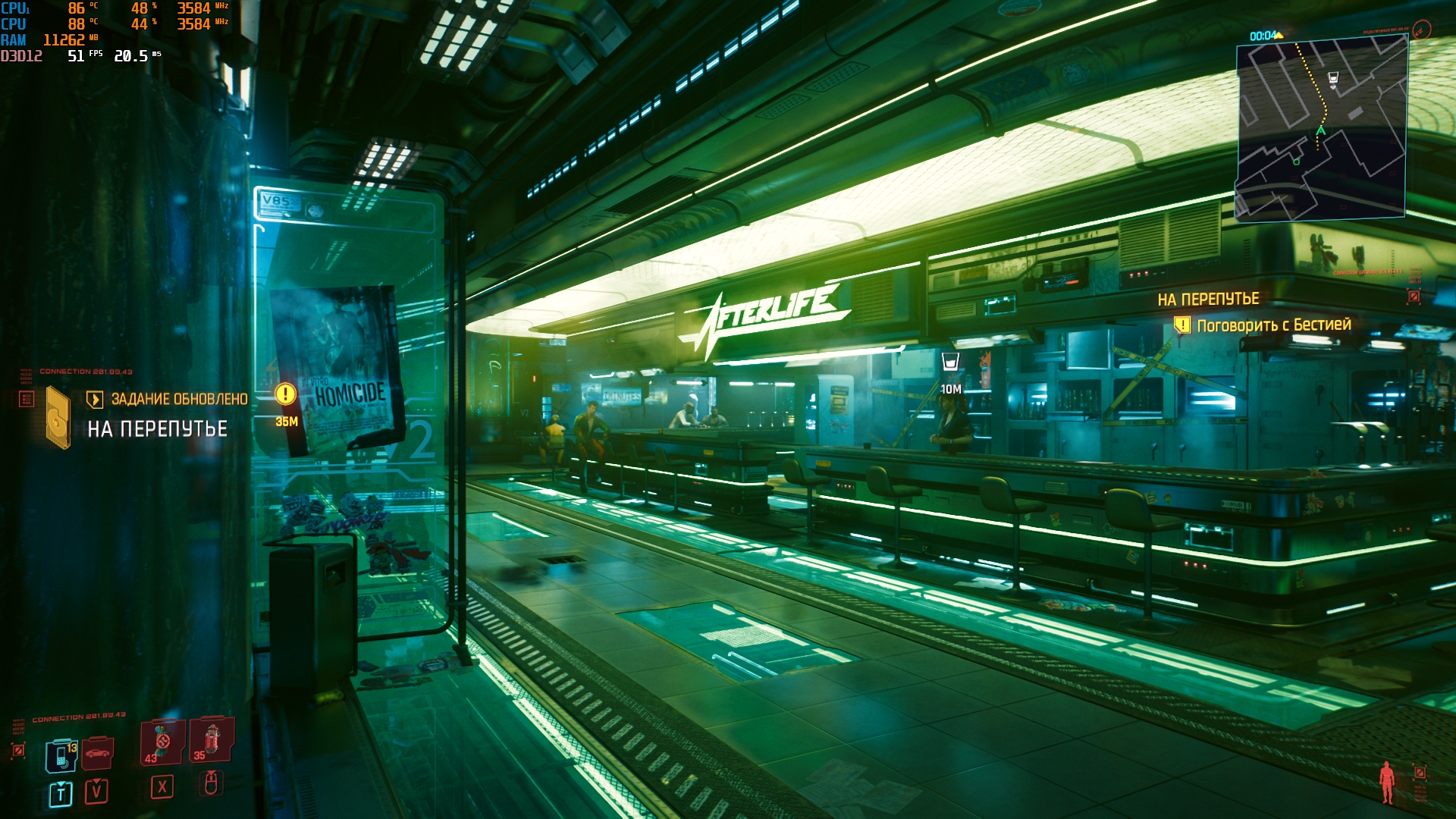 - Cyberpunk 2077. Ustawienia maksymalne, w tym ray tracing. DLSS w trybie automatycznym: 47-63 FPS.