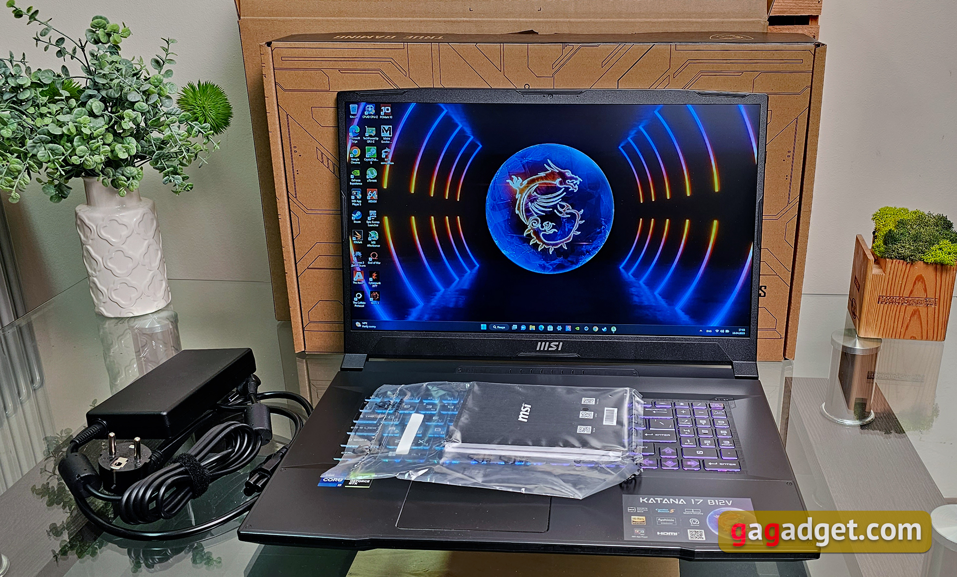 MSI Katana 17 B12V to bardzo fajny laptop gamingowy o nowoczesnej, zbalansowanej konfiguracji i wysokiej wydajności, która pozwala na komfortowe granie we wszystkie współczesne gry. Istnieje możliwość rozbudowy dysków SSD, pamięci RAM oraz wymiany karty sieci bezprzewodowej. Dzięki wydajnemu systemowi chłodzenia laptop działa stabilnie nawet przy długich okresach dużego obciążenia. Wyświetlacz laptopa ma zarówno zalety, jak i wady: ma częstotliwość odświeżania 144 Hz i bardzo dobrą kalibrację po wyjęciu z pudełka. Ale poziom jasności jest raczej skromny, podobnie jak gama kolorów. Klawiatura ma bardzo przyjemne przyciski i 4-strefowe podświetlenie RGB. Układ klawiatury wymaga jednak przyzwyczajenia.