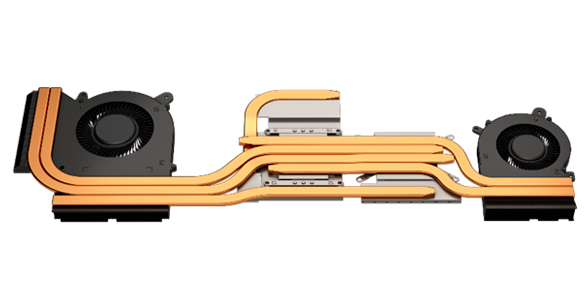 System chłodzenia Cooler Boost 5 obejmuje 2 wentylatory i 6 rurek cieplnych o konstrukcji Shared-Pipe (wspólne rurki cieplne dla CPU i GPU). Pod dużym obciążeniem hałas CO staje się typowy dla modeli gamingowych. Oczywiście nie jest to szum samolotu, ale wygodniej gra się z zestawem słuchawkowym. Klawiatura pozostaje zimna, jedynie obręcz nad nią staje się ciepła.