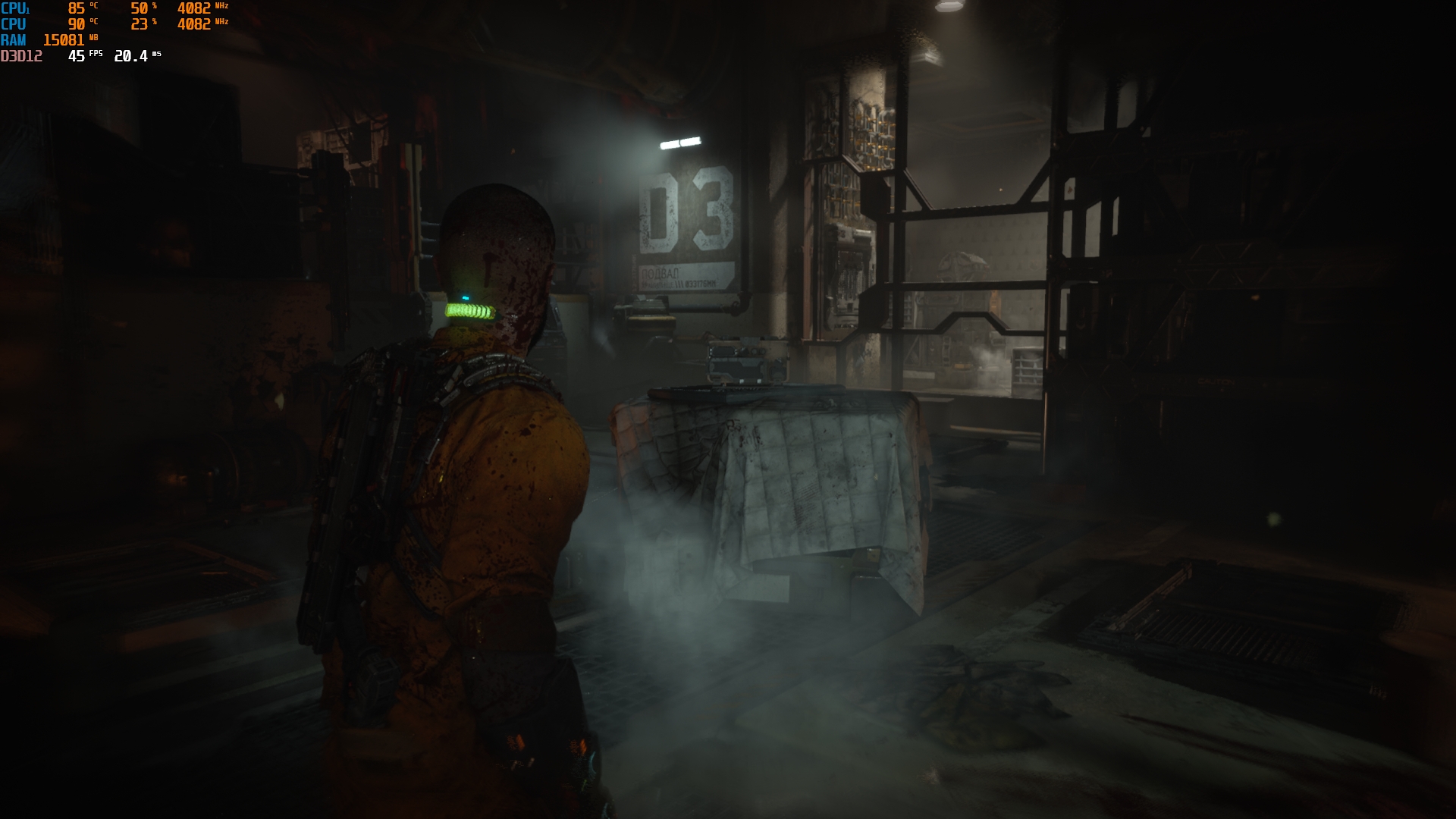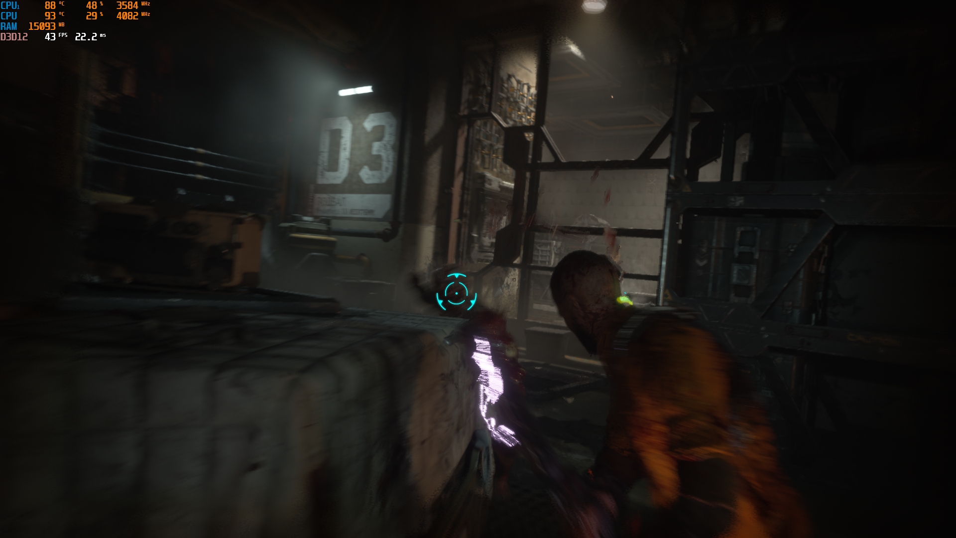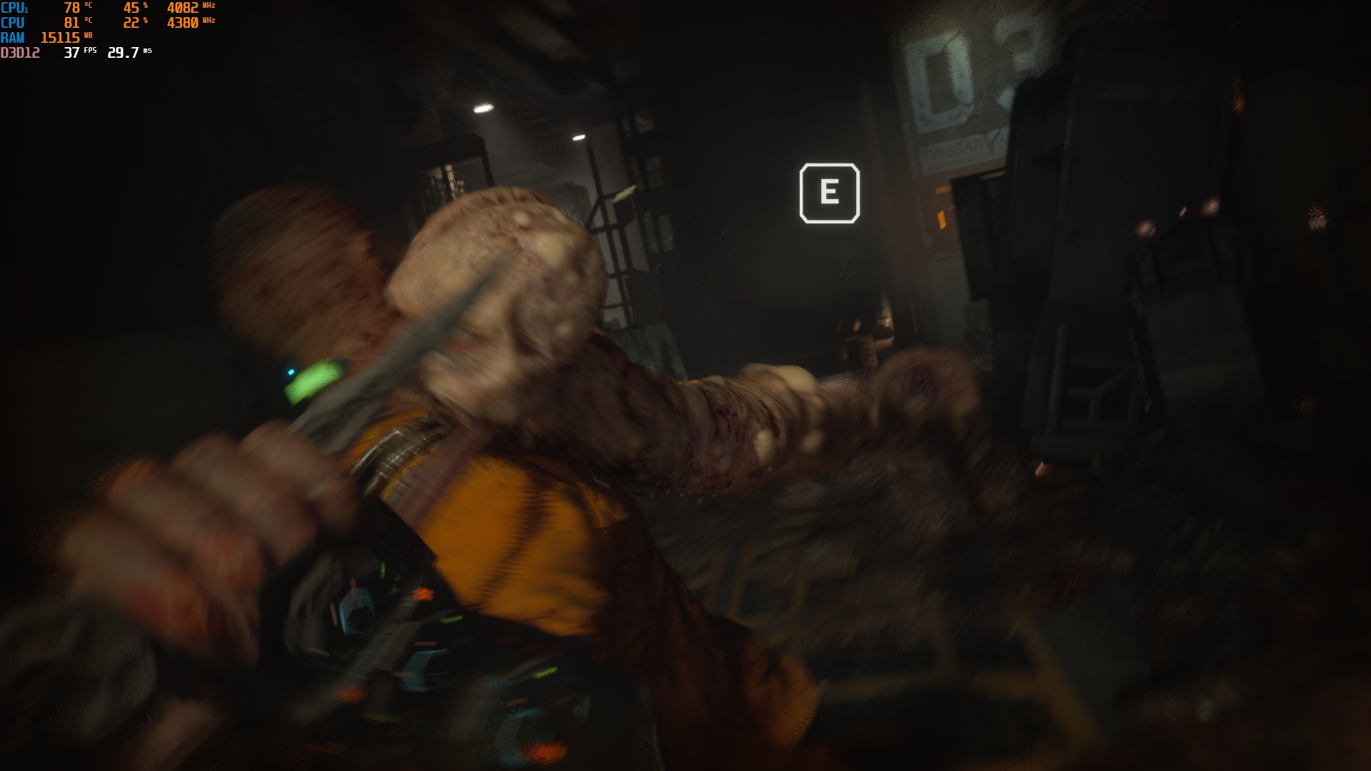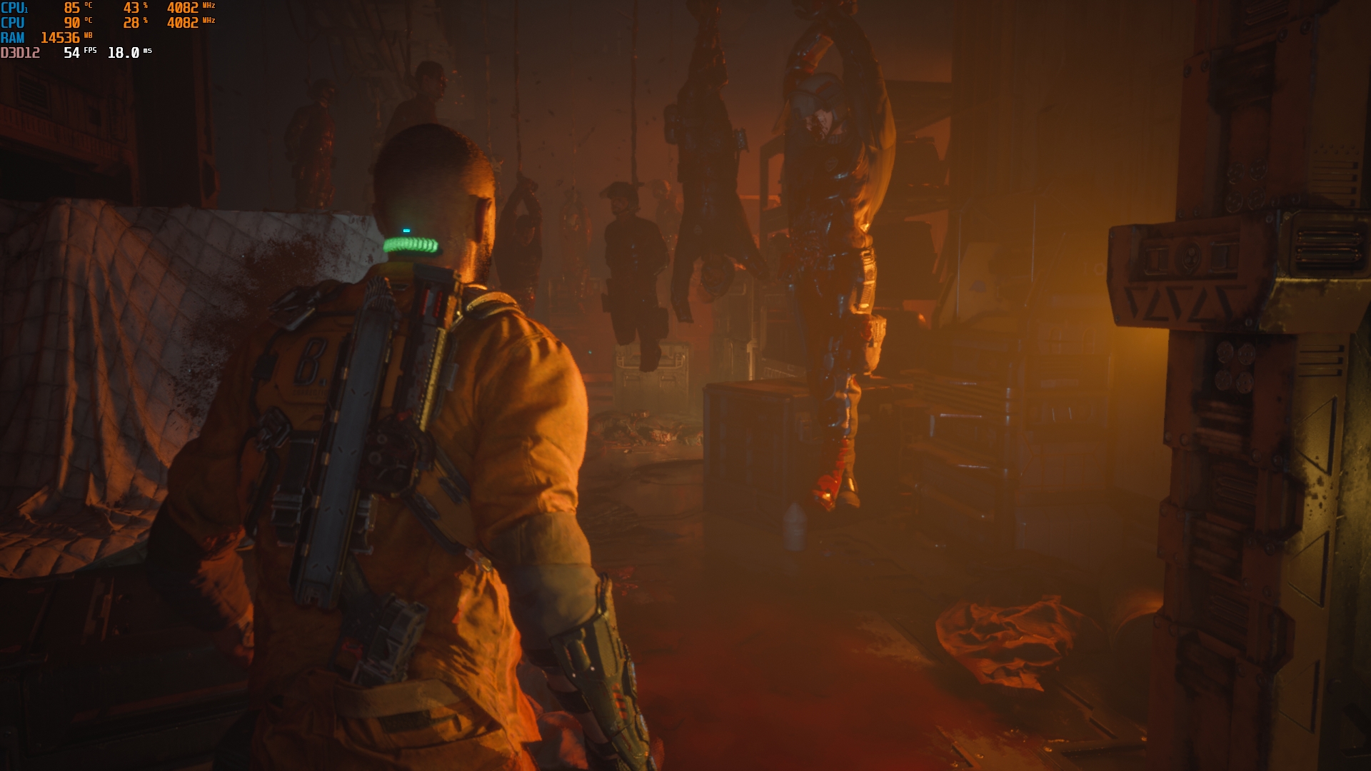 - Callisto Protocol. Maksymalne ustawienia, śledzenie na maksimum: 37-63 FPS