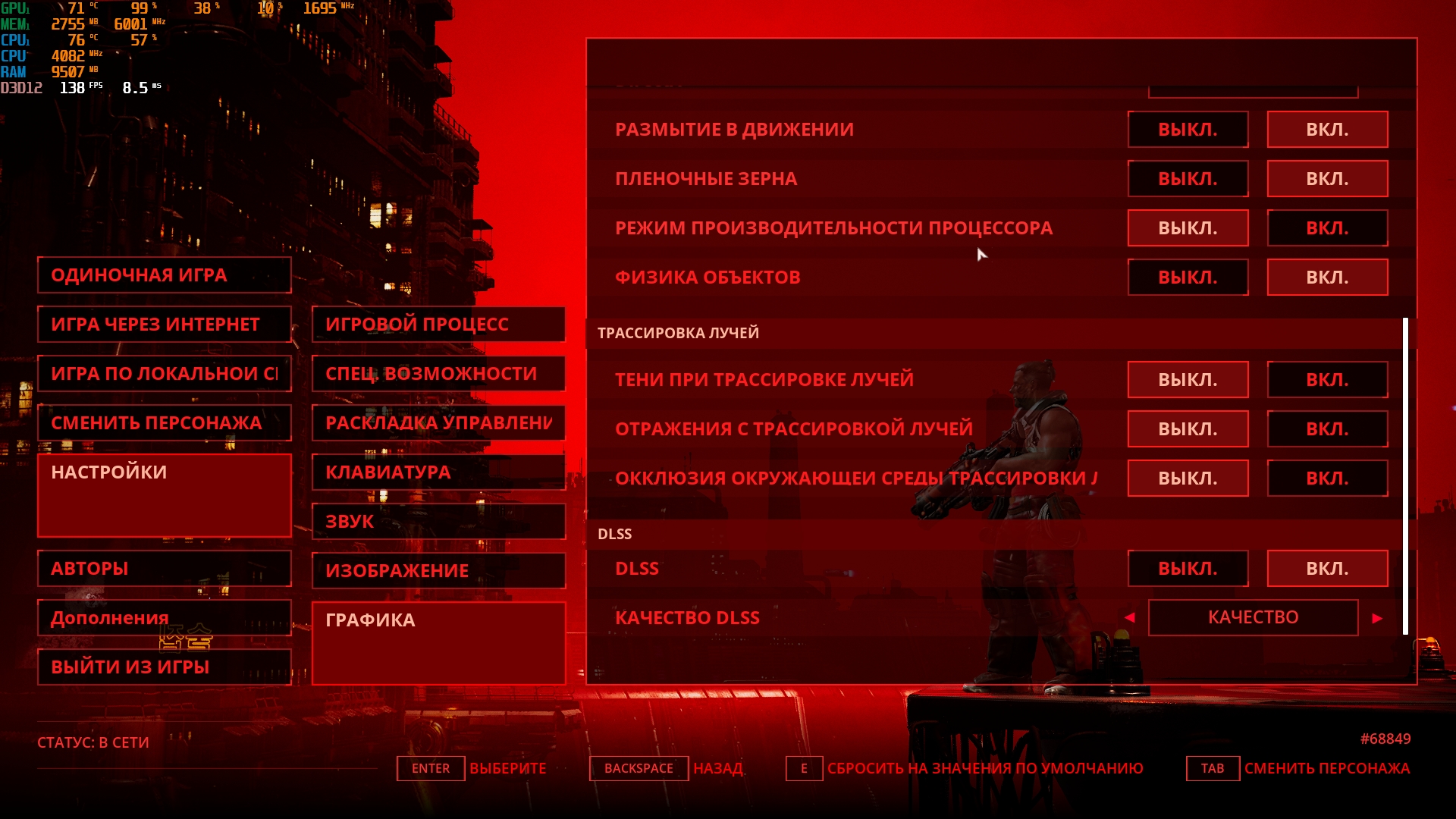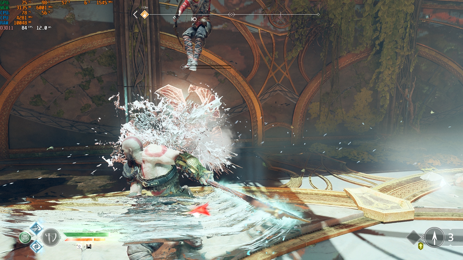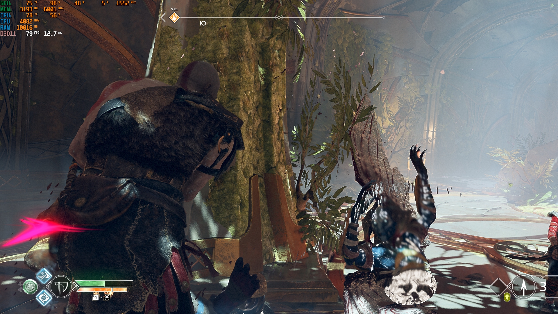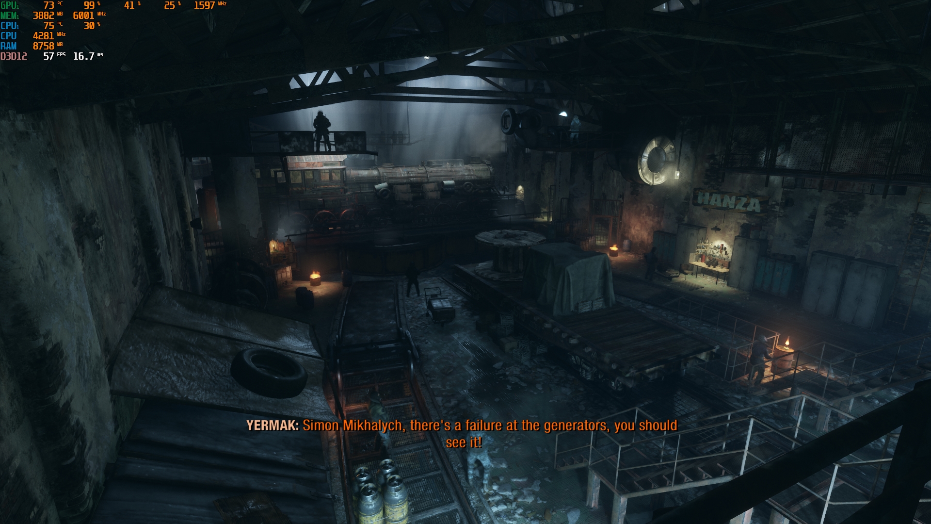 Konfiguracja laptopa pozwala na dość wygodne granie we wszelkie nowoczesne gry w natywnej rozdzielczości FullHD na średnich ustawieniach i uzyskanie przyzwoitych FPS-ów. Na przykład, Control na niskich/średnich ustawieniach, ale z ray tracingiem, działa z szybkością 40-50 FPS. God of War na średnich ustawieniach i DLSS w trybie jakości - od 60 do 80 FPS. Metro Exodus na wysokich ustawieniach z Ray Tracingiem, DLSS w trybie jakości bez teselacji i Hairworks jest utrzymywane w 60 FPS. The Ascent na maksymalnych ustawieniach, ale bez promieni - 90-110 FPS. Śledzenie natychmiast zmniejsza liczbę klatek na sekundę do około 20 FPS. Zrzuty ekranu z użytymi ustawieniami FPS i grafiki: