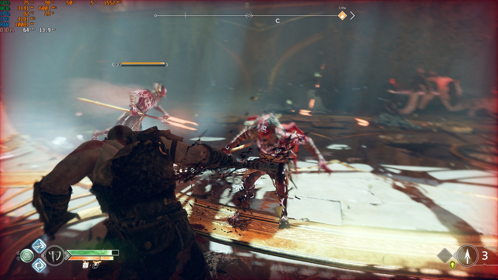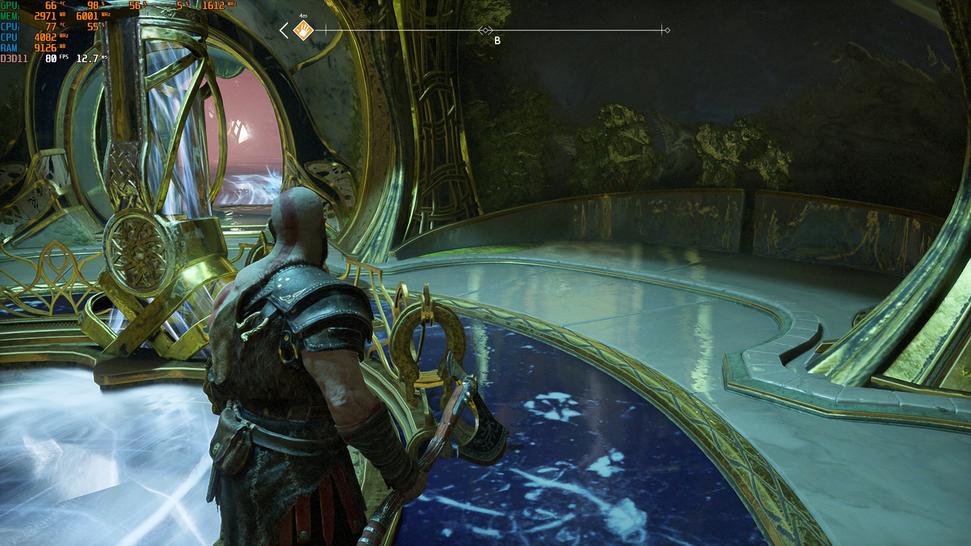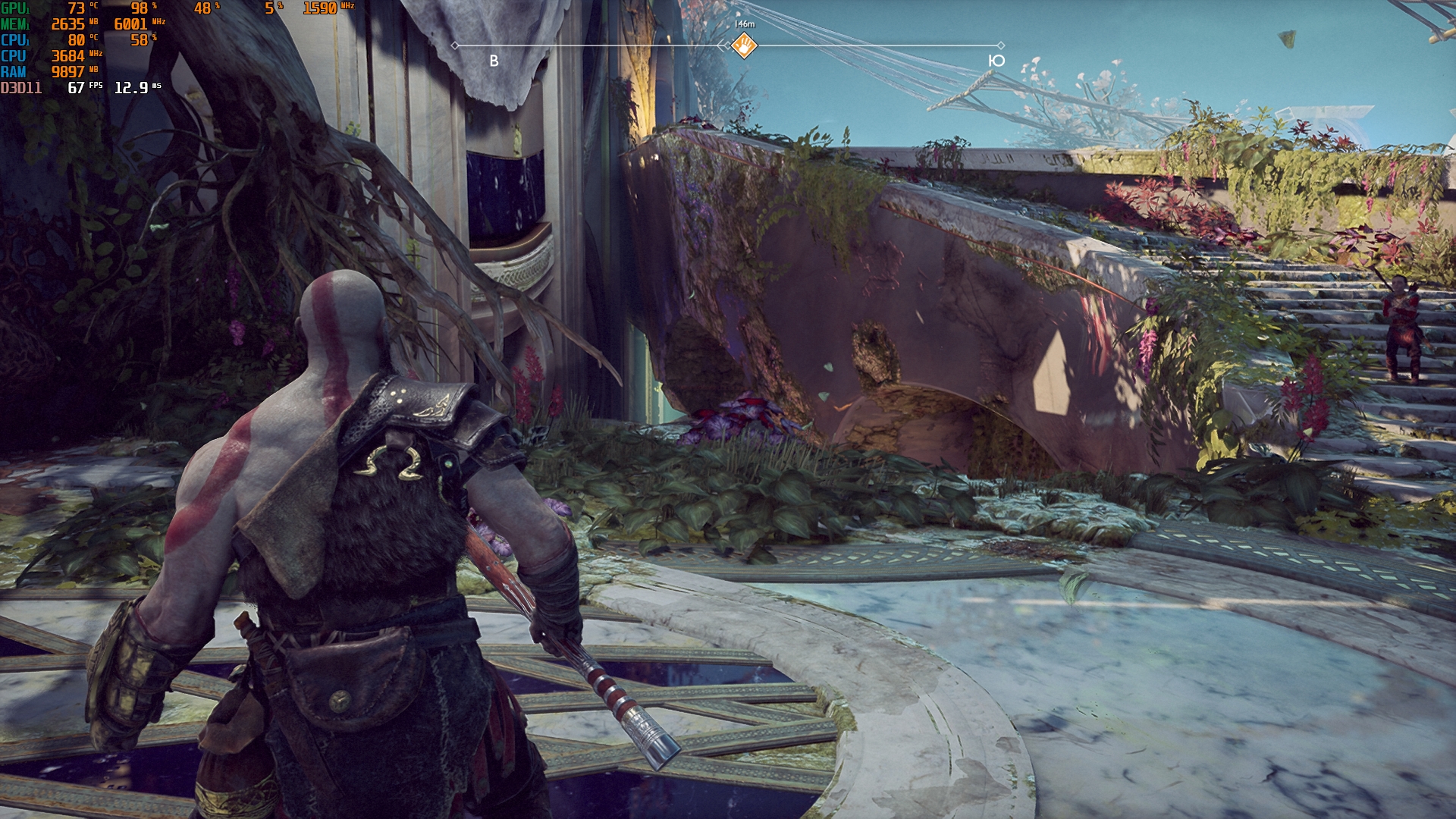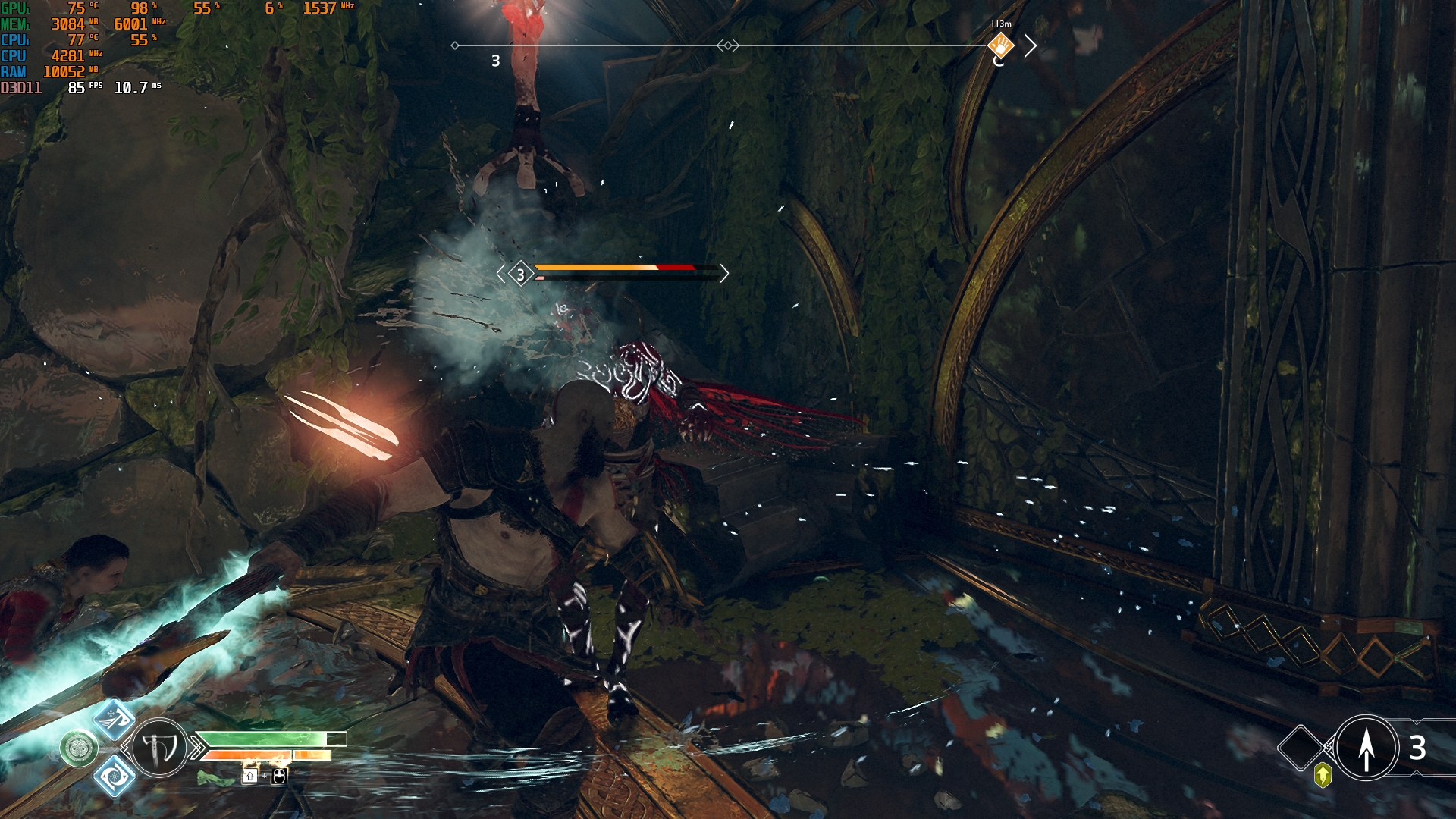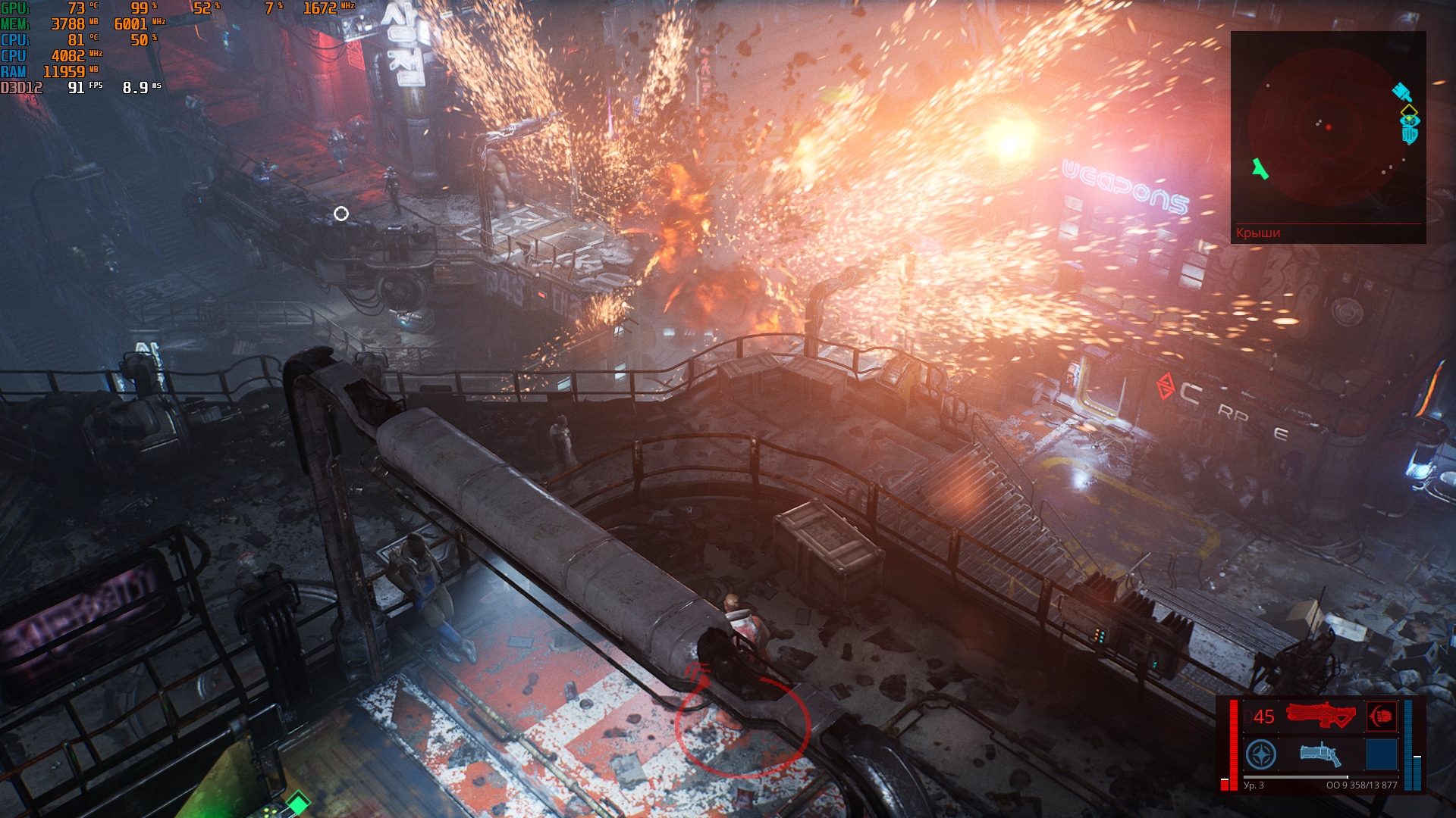 Konfiguracja laptopa pozwala na dość wygodne granie we wszelkie nowoczesne gry w natywnej rozdzielczości FullHD na średnich ustawieniach i uzyskanie przyzwoitych FPS-ów. Na przykład, Control na niskich/średnich ustawieniach, ale z ray tracingiem, działa z szybkością 40-50 FPS. God of War na średnich ustawieniach i DLSS w trybie jakości - od 60 do 80 FPS. Metro Exodus na wysokich ustawieniach z Ray Tracingiem, DLSS w trybie jakości bez teselacji i Hairworks jest utrzymywane w 60 FPS. The Ascent na maksymalnych ustawieniach, ale bez promieni - 90-110 FPS. Śledzenie natychmiast zmniejsza liczbę klatek na sekundę do około 20 FPS. Zrzuty ekranu z użytymi ustawieniami FPS i grafiki: