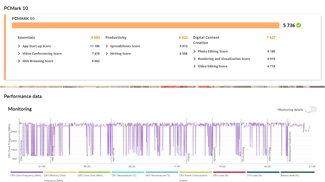 Laptop korzysta, choć nie z topowej konfiguracji, ale wydajność jest na dość wysokim poziomie. Dotyczy to zarówno testów procesora, jak i grafiki.