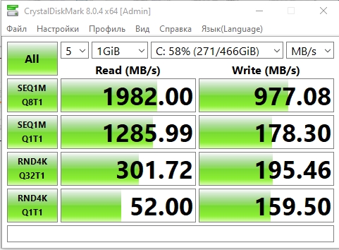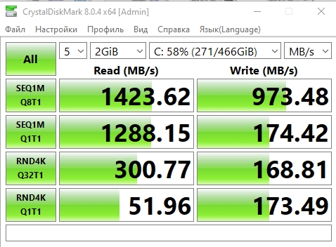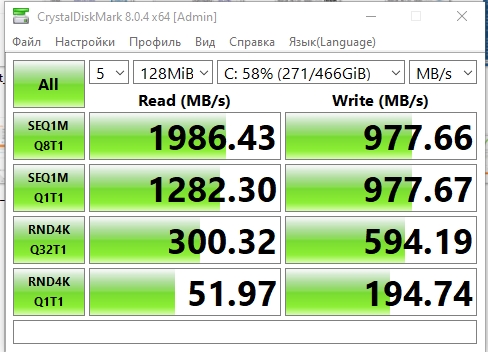 Maksymalna prędkość odczytu wynosiła około 2000 MB/s, zapis - nieco poniżej 1000 MB/s. Nie topowe rozwiązanie, ale całkiem imponująca wydajność, jak na niedrogi model.