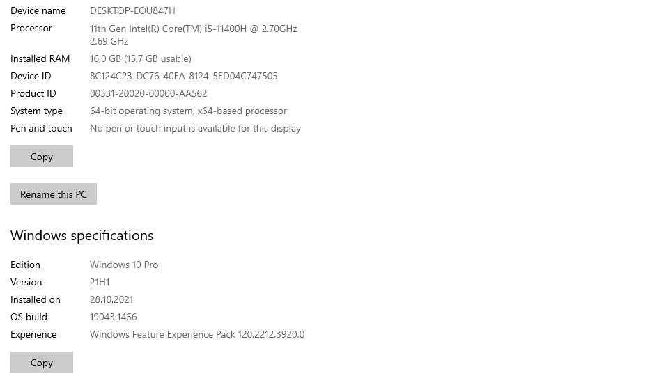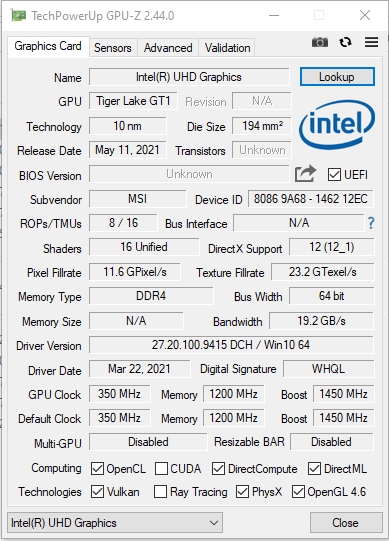 | Procesor | Intel Core i5-11400H (2,7-4,5 GHz), 6 rdzeni, 12 wątków, (Tiger Lake, 10nm SuperFin) |