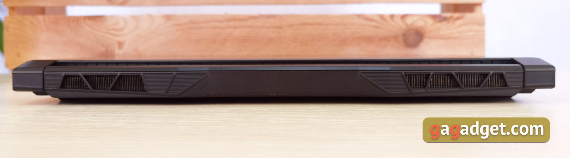 Boczne ramki wyświetlacza są dość cienkie (około 6 mm), górna jest nieco szersza. Na nim, oprócz kamery internetowej 720p i mikrofonów, znajdują się trzy ochronne gumowane wkładki. „Podbródek” jest szerszy, ma na sobie logo MSI.