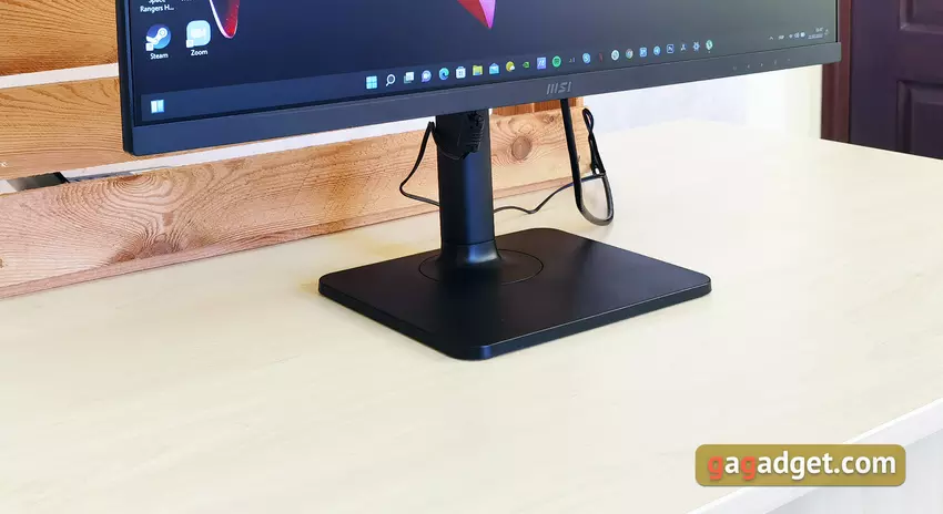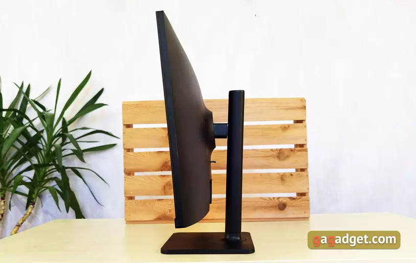 Stojak jest bardzo funkcjonalny i pozwala elastycznie regulować położenie monitora. Istnieje możliwość regulacji wysokości z różnicą do 110 mm. Jednocześnie w dolnej pozycji monitor praktycznie dotyka stojaka: