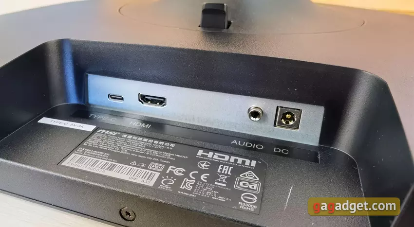 Nie ma tak wielu złączy, chociaż nie jest to krytyczne dla monitora biurowego. 1xHDMI 1.4, 1xType-C (z obsługą DisplayPort), gniazdo słuchawkowe i gniazdo zasilania: