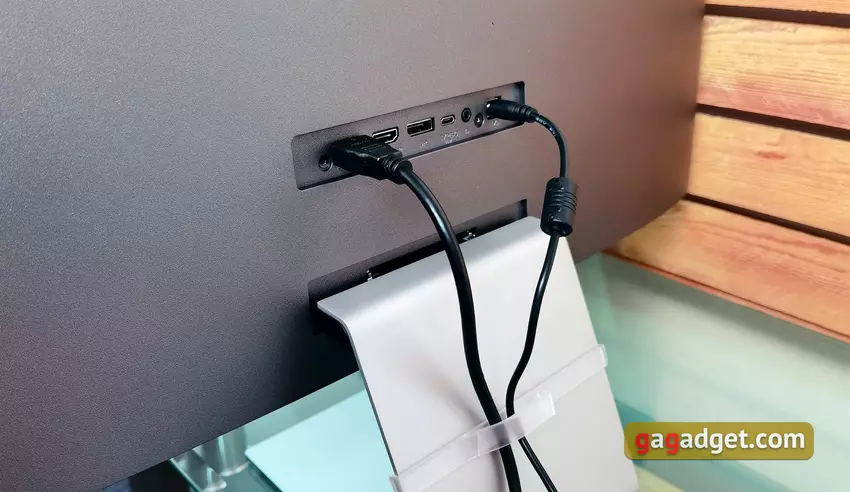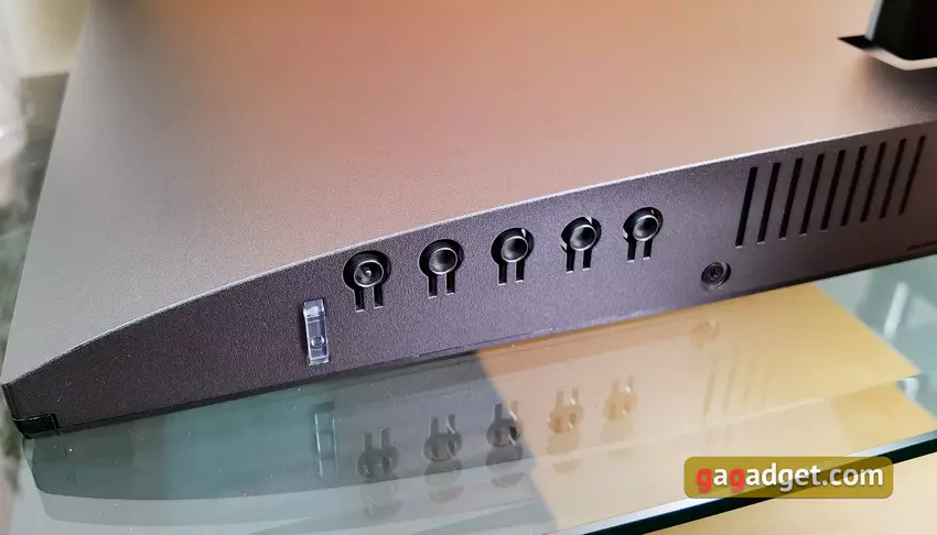 Wszystkie złącza znajdują się w niewielkim zagłębieniu tuż nad podstawką i są skierowane do tyłu. Rozwiązanie to jest bardzo wygodne w przypadku konieczności częstego przełączania kabli: nie ma potrzeby przesuwania lub przechylania monitora.