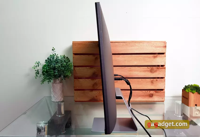 Musieliśmy dokonać pewnych poświęceń w imię minimalizmu. Podstawka nie pozwala na regulację wysokości ani kąta obrotu monitora. Jedynie kąt nachylenia można regulować w zakresie od +20° do -5°. Nie ma również możliwości montażu na ścianie. Może to nie być zbyt wygodne w niektórych miejscach pracy.