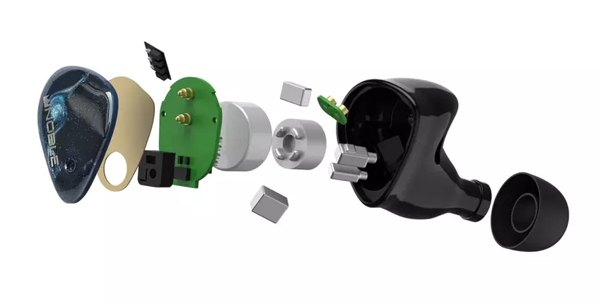 Noble Audio FoKus Mystique ma hybrydowy obwód emitera. Zawiera jeden przetwornik dynamiczny 8,2 mm i dwa przetworniki armaturowe wyprodukowane przez Knowles.