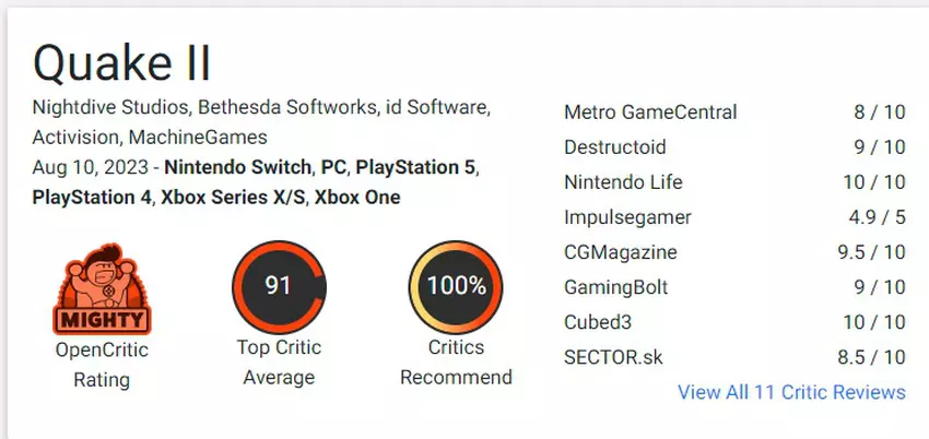 Gracze i krytycy są podekscytowani remasterem Quake 2. Zaktualizowana gra otrzymuje najwyższe oceny na wszystkich platformach