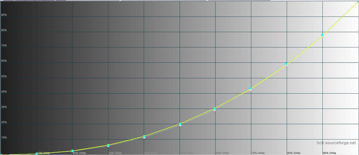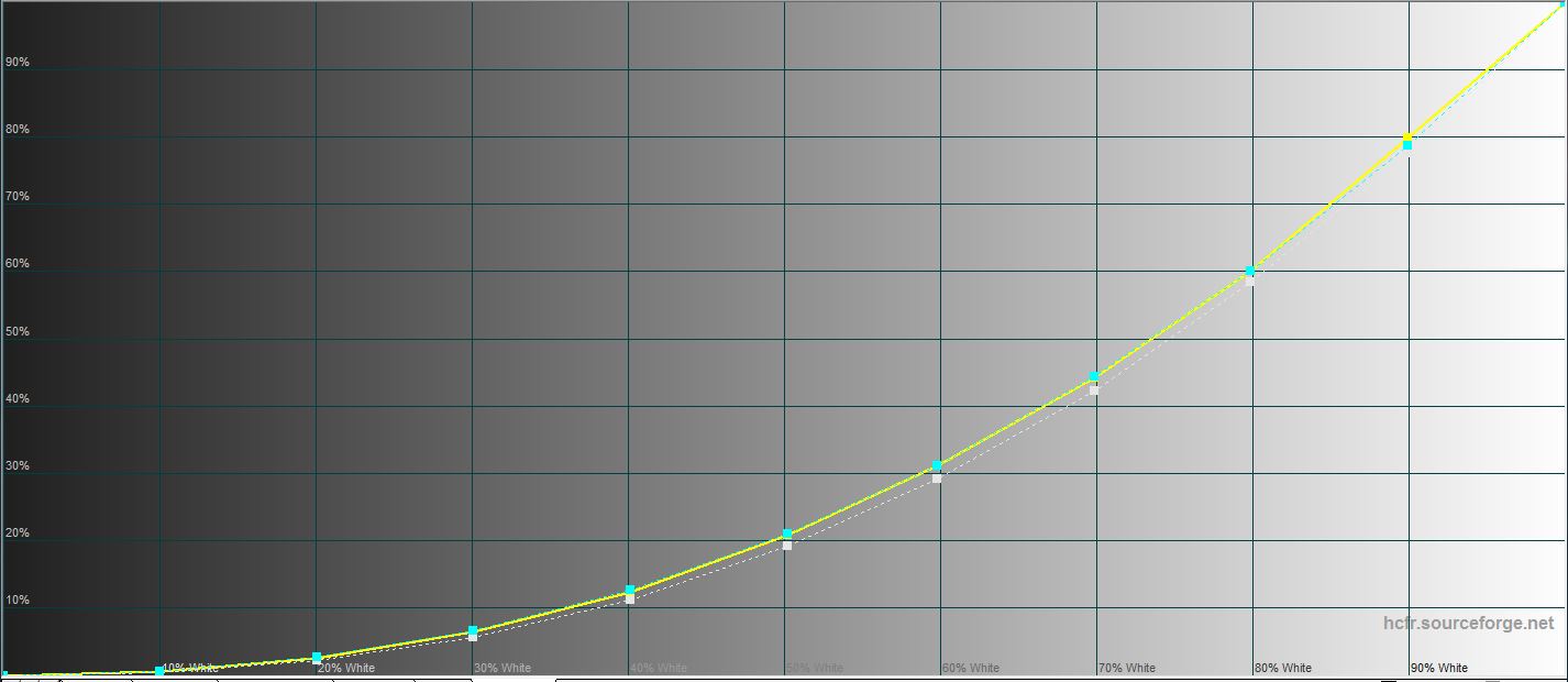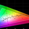 W trybie „Jasny” maksymalna jasność wynosiła 441,568 cd/m². Gama kolorów jest znacznie szersza niż sRGB. Jest nadmiar niebieskiego, a ekran przechodzi trochę w zimne odcienie. Temperatura barwowa wynosi 8500 K w porównaniu z referencyjną 6500 K, co nie jest krytyczne.
