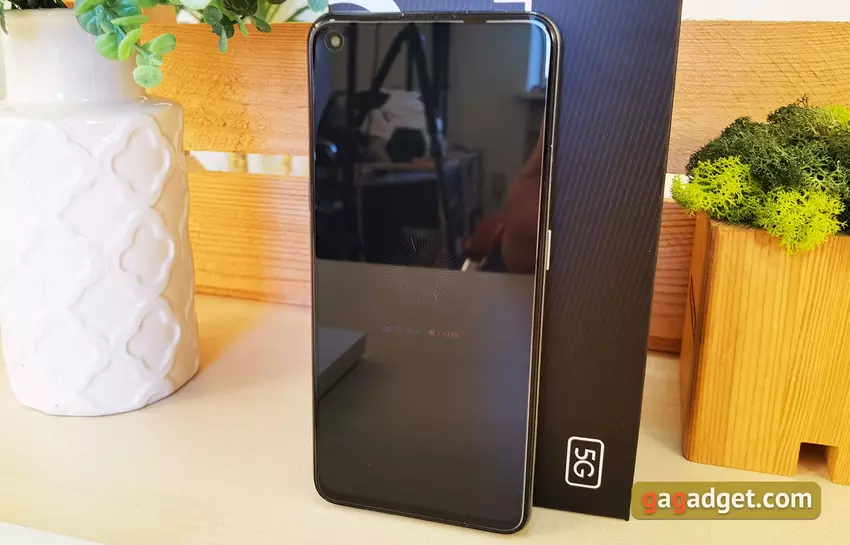 Istnieje również nieco uproszczona wersja smartfona o nazwie realme GT Master Edition. On też przyszedł do nas do recenzji, ale nie ma sensu robić pełnej recenzji: model z zbyt niedokończoną powłoką. I pojawiły się zauważalne problemy z wydajnością, łącznie z fryzami interfejsu i nieodpowiednim aparatem. Wyciąganie jakichkolwiek wniosków byłoby więc całkowicie błędne. Ale powiemy kilka słów o wyglądzie i różnicach pomiędzy modelami. Zewnętrznie smartfony są praktycznie nie do odróżnienia: ekran o podobnej przekątnej z otworem na przedni aparat. Tylna część jest zauważalnie inna. Mieliśmy wersję wykonaną przez japońskiego projektanta Naoto Fukasawę. Tył również wykonany jest ze sztucznej skóry w pięknym szarym kolorze z wytłoczonymi poziomymi paskami. Wygląda bardzo imponująco.